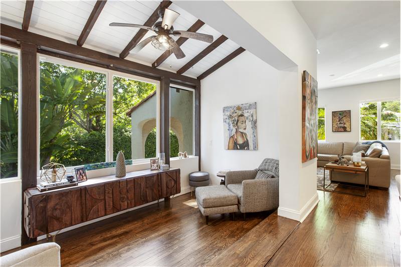 Renovated Old Spanish offering vintage charm and character along with every modern convenience! Front porch with sitting area. Living room with original red brick fireplace. Split bedroom floorpan with 2 bed/2 bath and den/sunroom. Newer kitchen with ample storage and bathrooms. Wood floors throughout. Hurricane impact windows offer abundant natural light and views of the gardens. 1 Car Carport. Situated on a 7,522 sf lot on a quiet tree-lined street and only 1 block from the Granada Golf Course. Short distance to the Coral Gables Country Club, Miracle Mile, and everything in the Gables!
