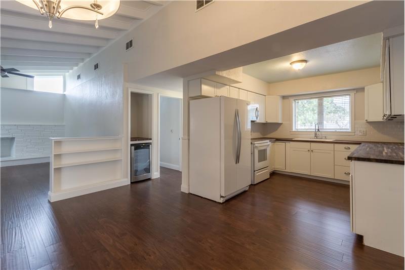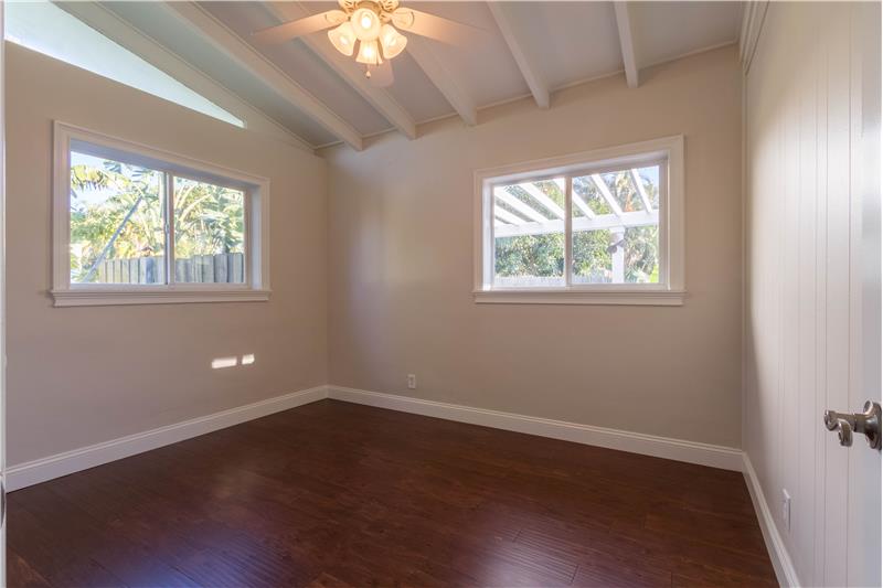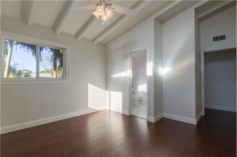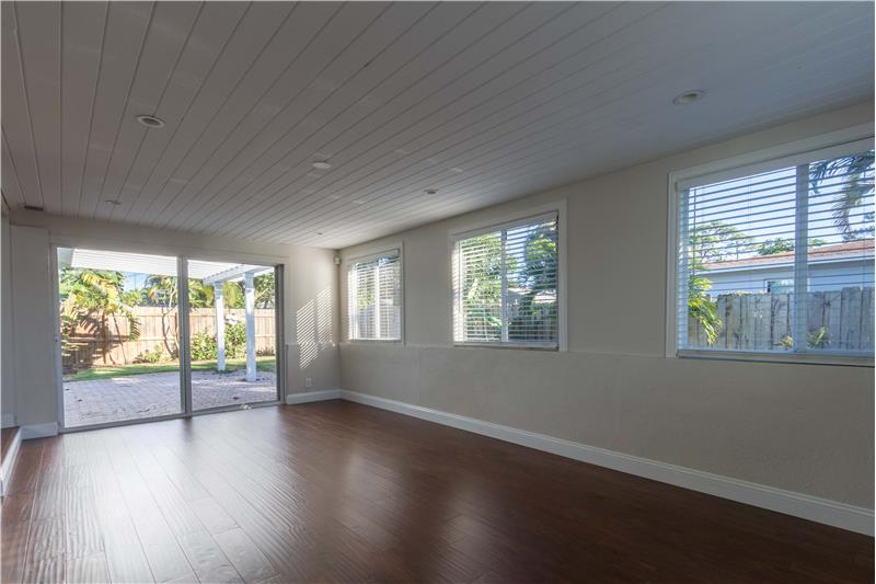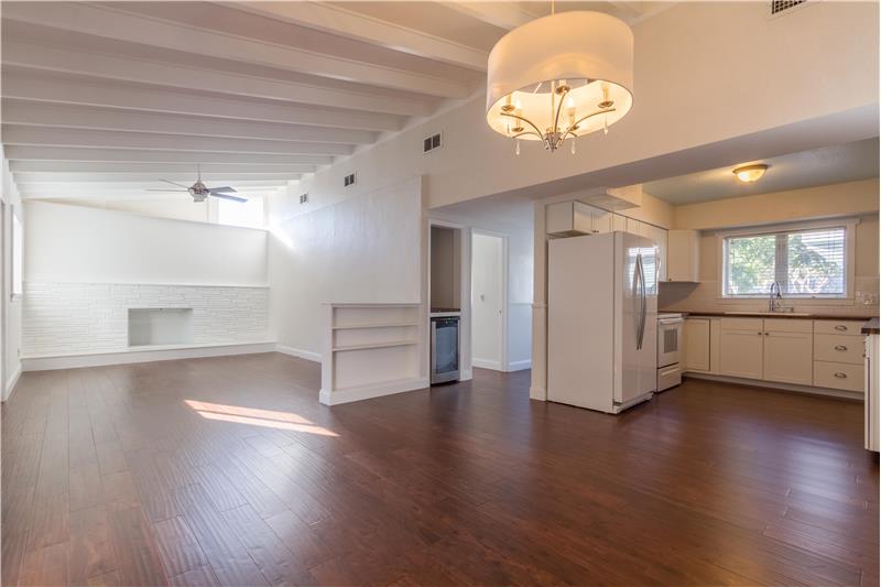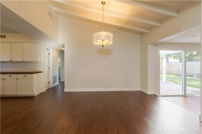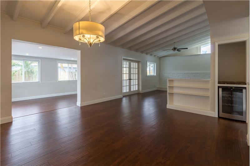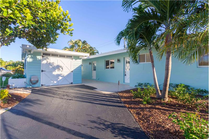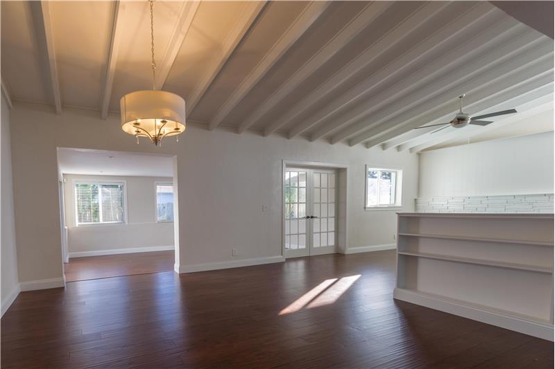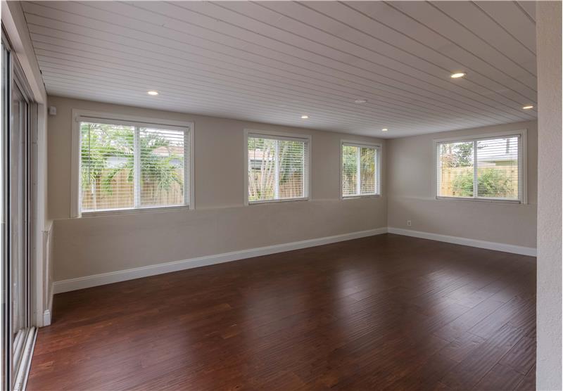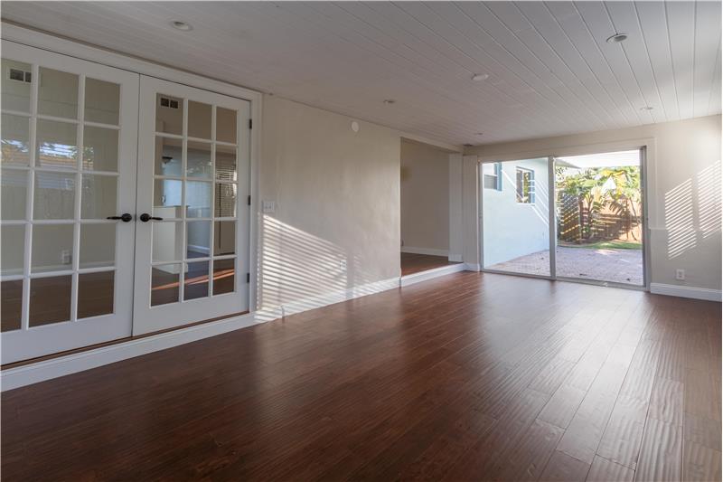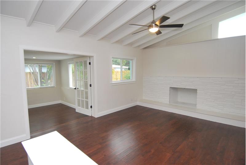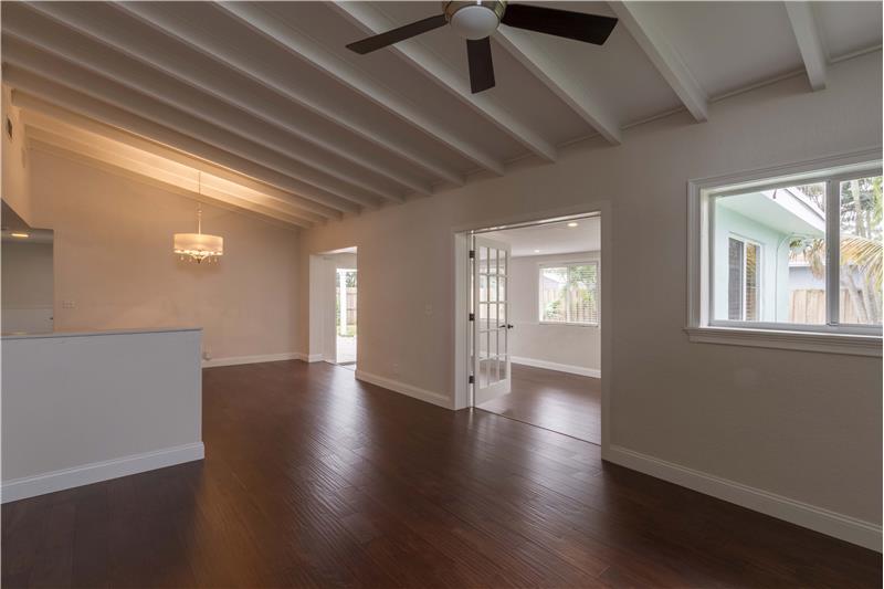 Ready to Move In! Completely renovated 3 bedrm 2 bath home. New roof Feb 2016, Covered front entry and breezeway with detached oversize one car garage. Beautiful wood floors and high vaulted ceilings. Spacious open floor plan features a wood burning fireplace, french doors open to a large family room. The split bedroom plan offers privacy for the master bedrm. White shaker style cabinetry, walnut butcher block counters and all new appliances. New washer & dryer in laundry room. Pergola covered brick paver patio and large backyard with room for a pool. Only minutes to the beach!