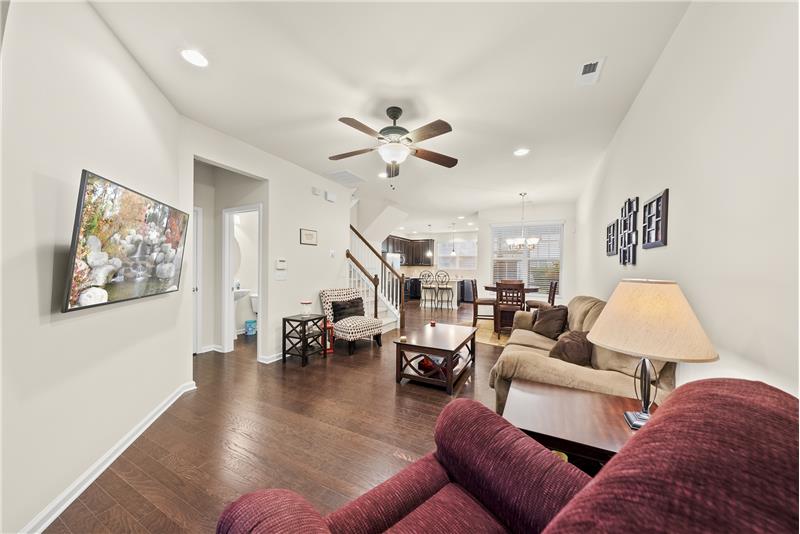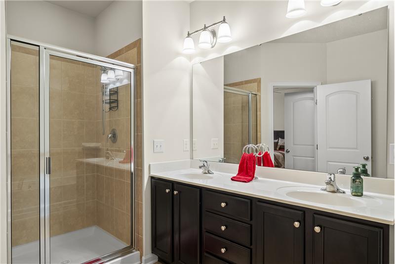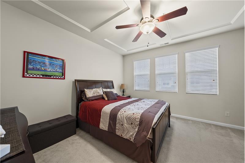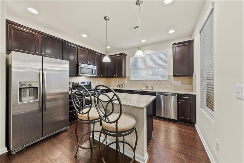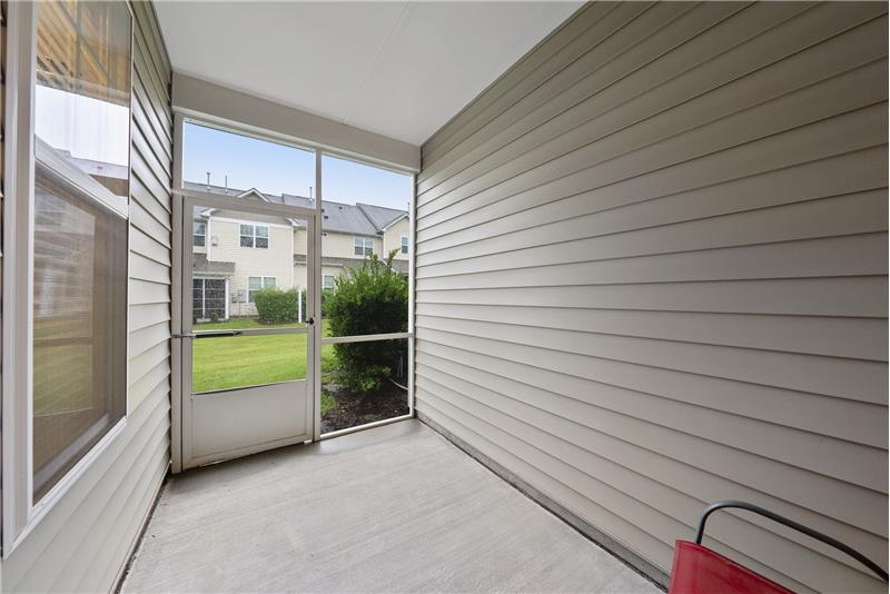 MINUTES FROM BRIER CREEK WITH AN OVERSIZED DRIVEWAY! You will love this open floorplan with island kitchen, screened porch & 3 bedrooms upstairs. The primary bedroom has a coffered ceiling & oversized closet. The primary bath has a soaking tub with separate shower & tile floors. Kitchen includes granite counters & stainless steel appliances - Refrigerator stays! Washer & dryer included! Ring doorbell stays.