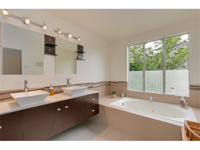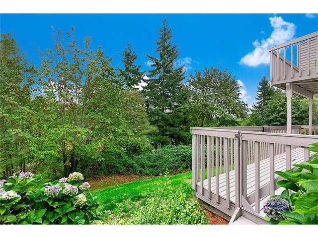Modern architecture radiates from this 3 bed 3.5 bath town home w/mountain views. Custom finishes include, new fixtures, baths & flooring. Open kitchen w/modern finishes, new counters, S/S appliances, living space boast 20 ft ceilings & opens to private deck. Master suite w/vaulted ceiling & 5 piece bath w/ jetted tub. Versatile basement w/bonus, kitchenette, bed/bath, walk-in closet, fenced patio, perfect for MIL. Acres of beautifully landscaped grounds. Close to DT Redmond & mins to Microsoft!