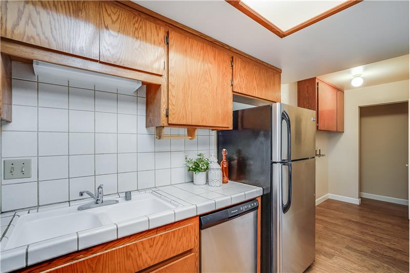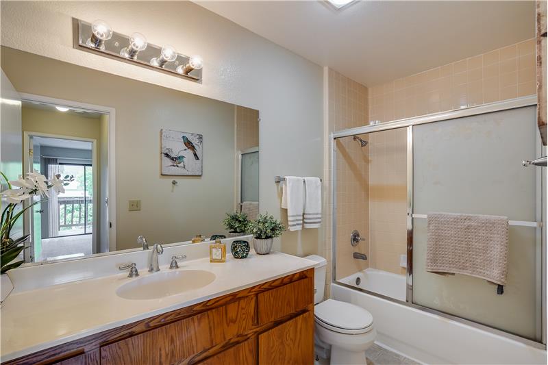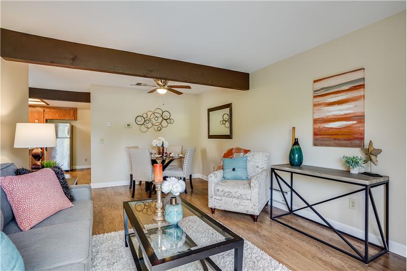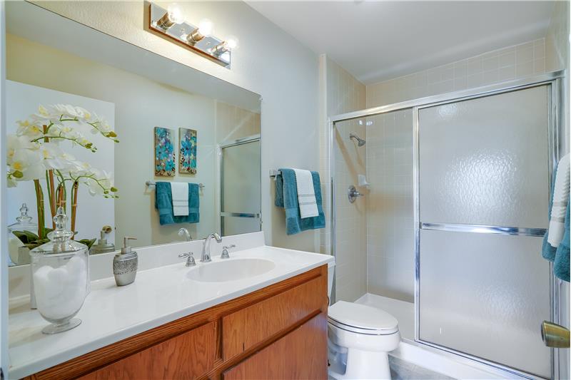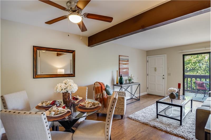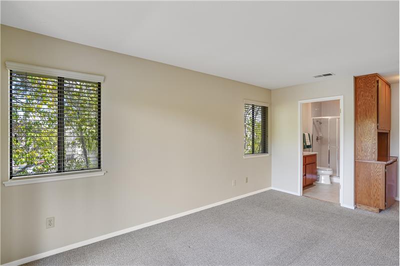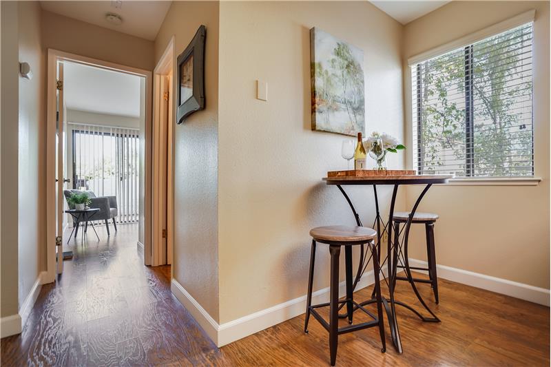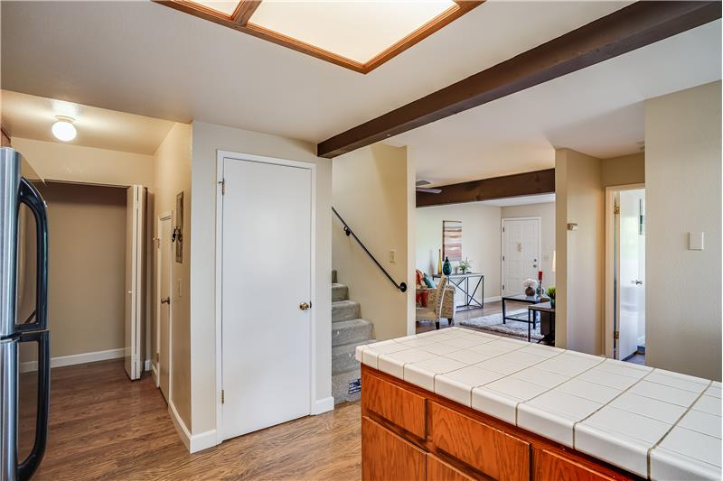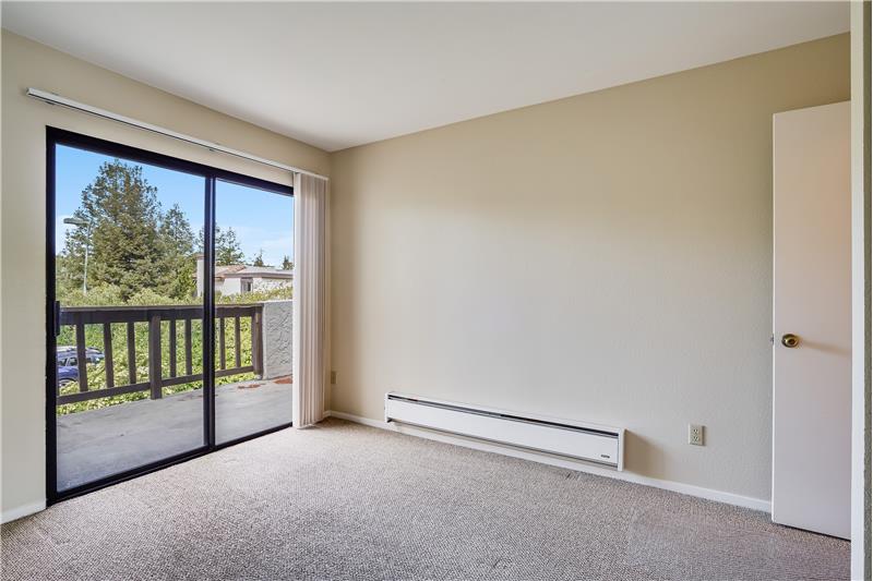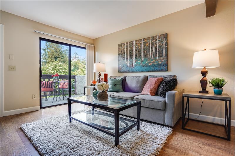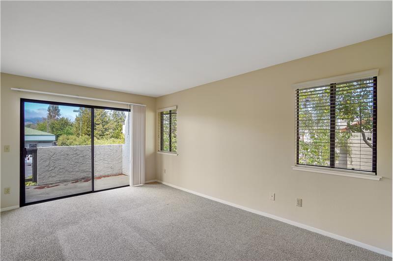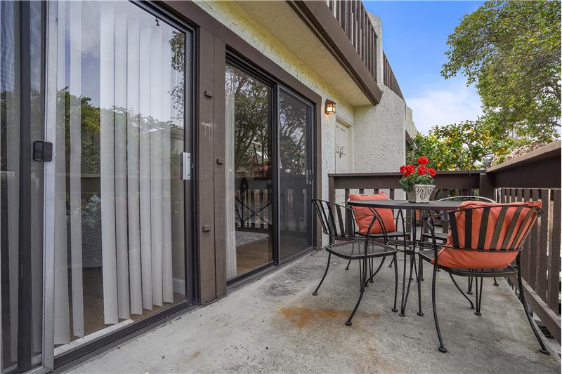 Two Story 3 Bedroom, 2.5 Bath, End Unit Townhouse Located well away from public streets, this delightful end unit townhouse is sure to let you "get away" and relax. Should you wish to mix with neighbors the community pool is on the opposite side of the building about 4 units away. The open living room, dining room, and partially open kitchen provide ample space for entertaining inside while the private patio is just outside the sliding glass doors. Each of the three bedrooms is bright and cheerful having a sliding glass door opening out to either the raised patio or to the 2nd floor bal