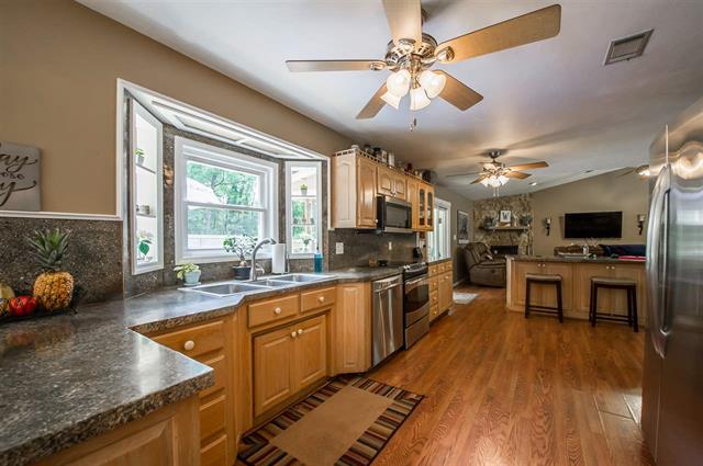 TEXT/CALL SELLER**1 HOUR NOTICE**Seller requests closing to take place at Manausa Law Firm, P.A.**We're jealous of whoever gets into this gorgeous pool home just in time for summer! This spacious 3-bed, 2-bath open-concept home features warm wood flooring through the main living areas and cozy carpet in the bedrooms. The oversized family room with stone fireplace is perfect for entertaining a crowd and flows into the rec room and outdoor area. There's plenty of counter space in the kitchen made of trendy concrete with stainless steel appliances and sweeping views. Enjoy easy access from the ki