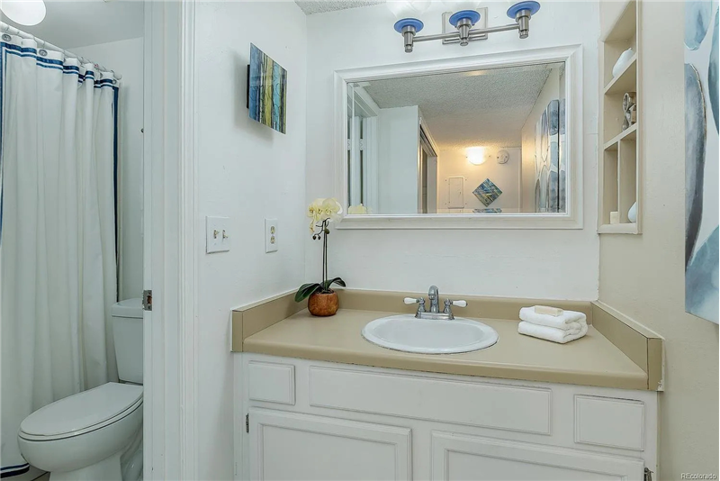Tucked into a quiet pocket of South Denver’s Hampden corridor, this two-level corner unit feels more like a private treehouse than a typical condo. Sunlight pours through oversized windows into a vaulted great room anchored by a river-rock fireplace—perfect for curling up with a book or hosting game nights. Step out onto the wraparound deck (one of two) where mature pines create a natural screen; it’s an extension of the living space, wired for string lights and ready for your grill. The kitchen is compact but smart: quartz counters, soft-close shaker cabinets, a full suite of black-st ...