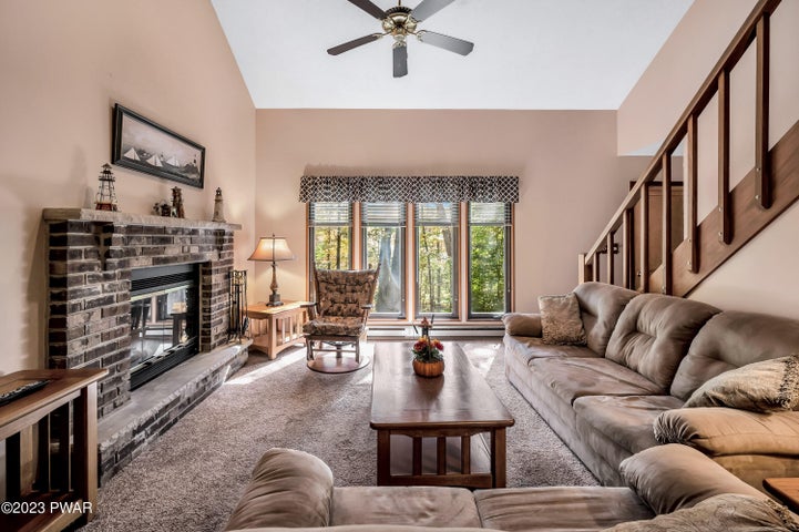 Three bedroom, fully furnished, Contemporary home sits nestled among the trees on a quiet cul-de-sac facing a 15 acre green space. Here you will enjoy a 3- season sunroom and living room overlooking nature. Inside is a double loft, a cozy woodburning fireplace, and an oversize jetted tub. Outside you will find a paved drive, garden shed, and a deck with views. Located in the premiere gate community of The Hideout with year-round amenities including lakes, pools, beaches, clubhouse, lodge, tennis, golf, skiing, fitness center, security, central sewer and water, and much more!