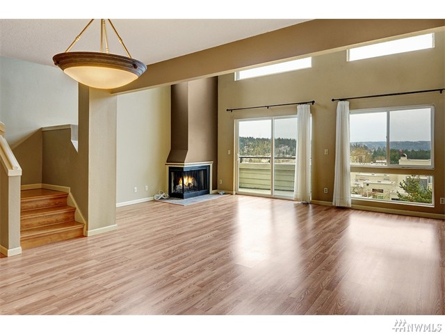 Desirable Two-Story unit at Knollwood in Redmond. Perfect relaxing place with bright living room w/wall of Windows, soaring ceilings & cozy fireplace provides. Fantastic view of the cascades and downtown from Living, Deck and upper den. Open kitchen with newly remodeled cabinets & granite slab counter tops. Upper level includes master bedroom w/ full bath, laundry & open Office. Outdoor Pool/Hot Tub. Near Marymoor Park, Redmond Town Center, Sammamish River Trail & Microsoft. No Rental Cap.
