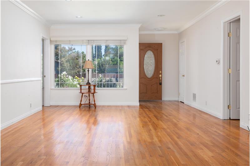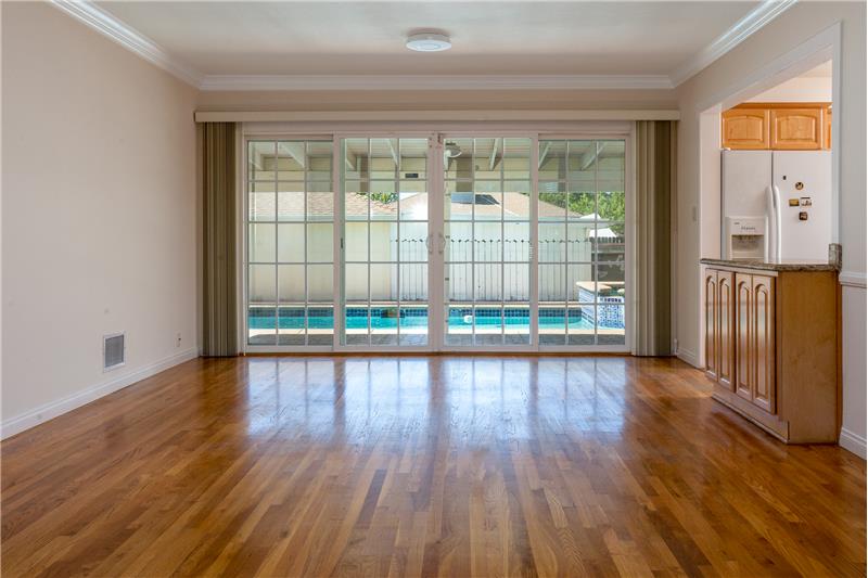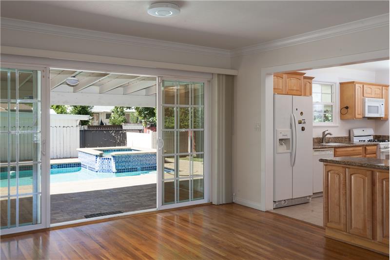 This charming Winnetka pool home combines the best of its old-world charm and modern sensibilities! The property enjoys a convenient West San Fernando Valley location close to freeways, schools and shopping. A white picket fence lined with beds of roses and flowers and a pair of tall, tall palm trees welcomes you to the front door. Inside, handsome hardwood flooring flows throughout the main living areas beginning in the spacious living room. The kitchen is outfitted with granite counters, tile flooring, upgraded cabinetry and a sunny window over the sink.