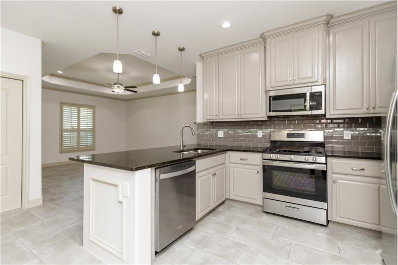 Welcome to this beautiful townhome in a gated community located on Corpus Christi's sought after Southside. As you enter the home, it flows into an open concept living room, dining room and gourmet kitchen. Plantation shutters throughout. The kitchen boasts granite counter tops, gas range, custom solid wood cabinetry, stainless steel appliances and a beautiful breakfast bar. Arched hallway leads into the spacious 3 bedroom , 2 full bath townhome that offers tile flooring throughout. Coffered ceilings in foyer, living room and master bedroom. The spacious master bedroom has a large walk in clos