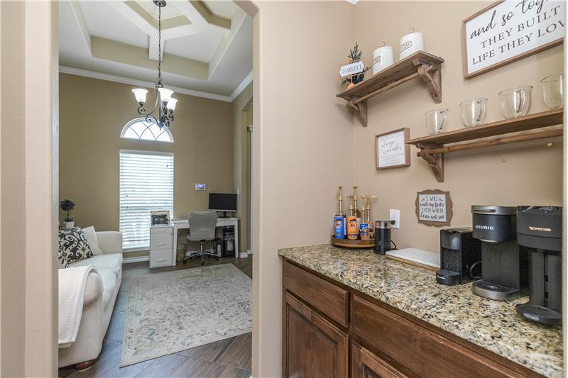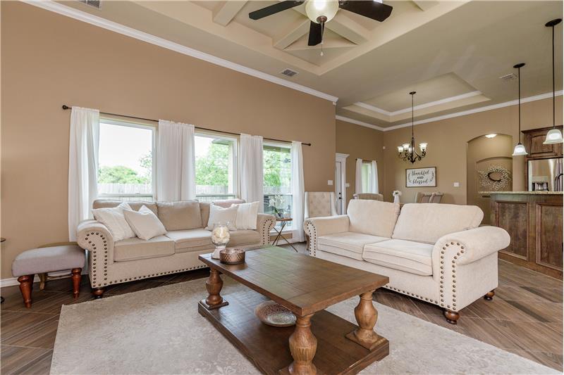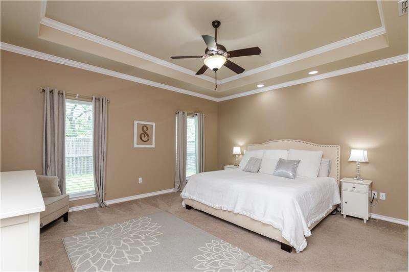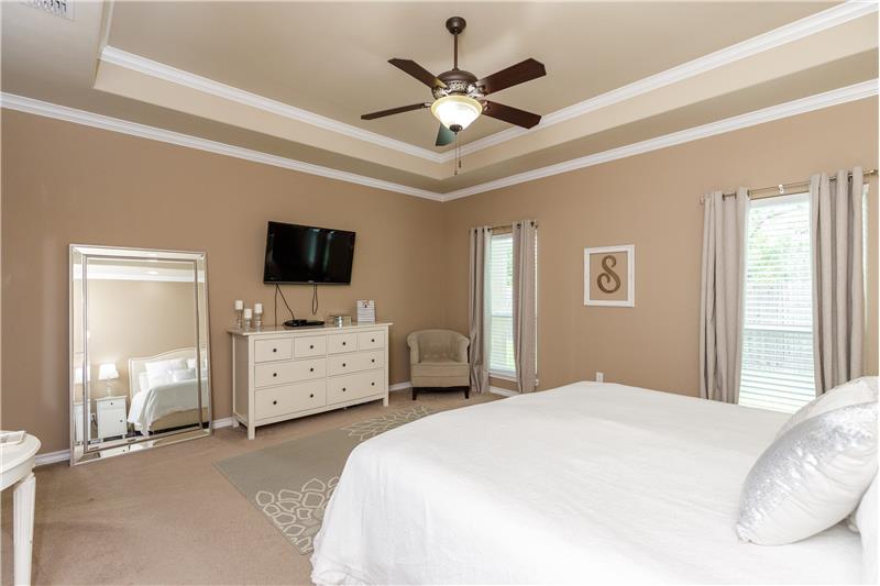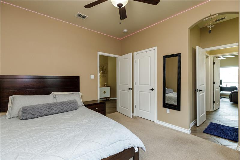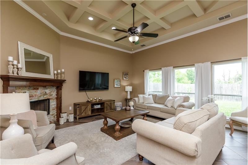This incredible home is nestled in South Lake Estates. As you enter you're greeted w/16-foot ceilings, grand foyer, formal dining/office/or media room that flow into a modern-day open concept floor plan. The living room comes together seamlessly w/the dining room and kitchen perfect for hosting. The kitchen features tons of cabinetry, island, granite countertops, gas cooktop, built in microwave,stove,large pantry and a butler's pantry perfect for a coffee bar. You will find the Primary Suite is privately located away from guest rooms. The Primary Suite has tray ceilings that adds elegance ...