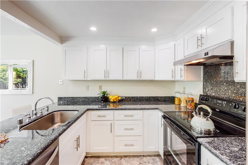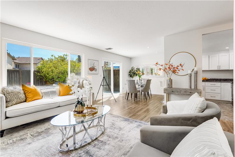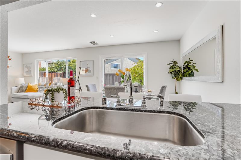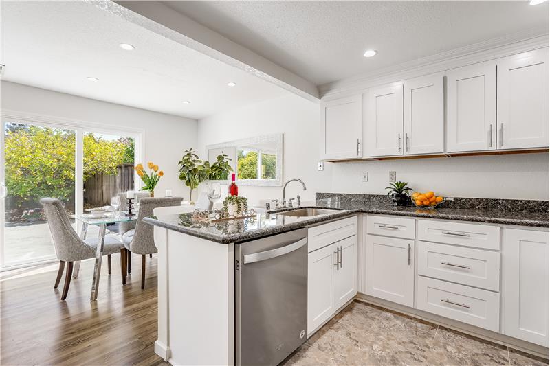 Wonderful 3 Bedroom, 2.5 Bath Home Near Park With 4 Mile Trail This single family home is attached to the other half of a "duplex" located at the back of a small development, and separated from the Penitencia Creek County Park by a green belt and an iron fence. Its modern kitchen features granite counter tops, white recessed panel cabinets, a smooth top electric range, and more. The dining area is open to both the kitchen and the living room and has a sliding glass door leading out to the backyard patio. The living room has a wood plank style floor and fireplace with a white brick surround