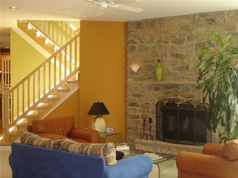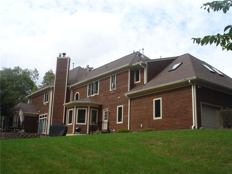 Spacious colonial located on a private, mountaintop cul-de-sac. Terraced, paver-stone patio overlooks quiet back yard and preserved woods. Kitchen features very large breakfast area, a granite-topped island seating for four, corian counters, and high-quality appliances. A paver walk leads to the unique corner-angled front door and impressive two-story foyer. Step down into an open floorplan with living room, dining room, and family room connected for ease of entertaining, enhanced by a warm, wood-burning floor-to-ceiling stone fireplace.