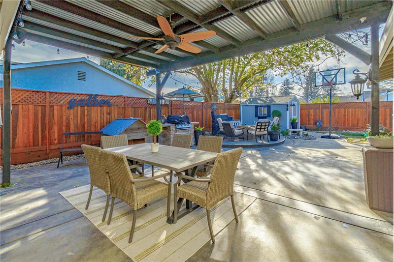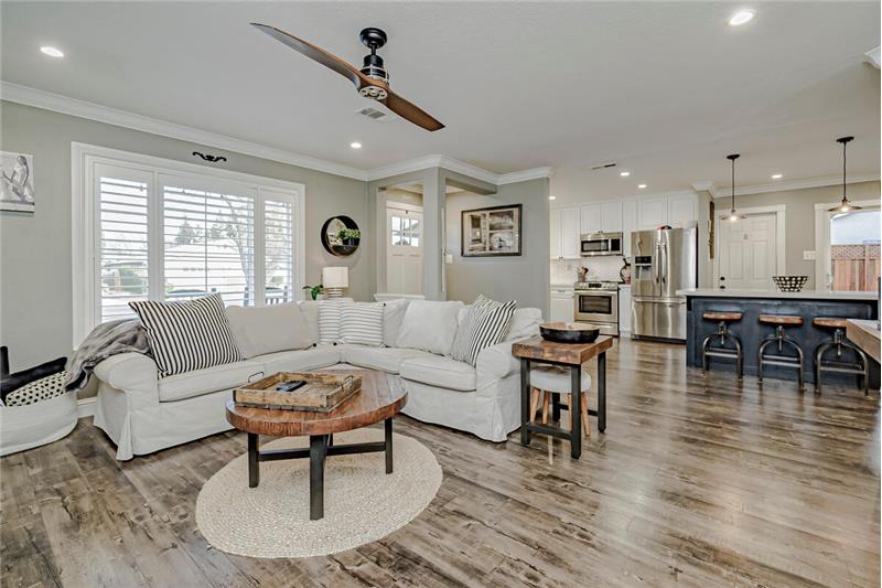 This owner has made stunning design choices both inside and out while updating this charming four bedroom single story home! Inside you'll find handsome wood laminate floors, a stunning kitchen remodel with modern appliances and style, built in living room shelves with an electric fireplace, shiplap focus walls, updated lighting fixtures, gorgeous bathroom tile work, and so much more! Outside you'll find custom stamped concrete work, two backyard covered patios, an area designed for your fire pit, and gorgeous landscaping choices. Get ready for the good life in this designer Woodland home!