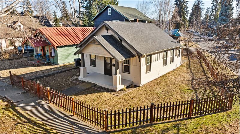 This charming downtown cottage sits on a coveted corner lot, steps away from Drake Park, downtown Bend, the Deschutes River footbridge to Columbia Park, The Deschutes River Trail to Miller's Landing Park, Bend Whitewater Park, The Old Mill District, and Farewell Bend Park. The cozy two-bedroom, one-bathroom home boasts a fully fenced yard in a stellar location. Recent updates include new interior and exterior paint, newer siding, new carpet, newer appliances, countertops, laminate floors, and water heater.