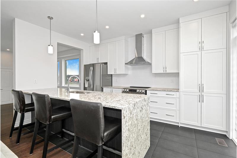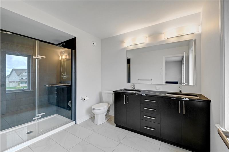 Modern luxury home in a peaceful area with no front neighbors, park views, sleek kitchen, office, spa-like ensuite, finished basement, and a yard perfect for entertaining—style meets function.
