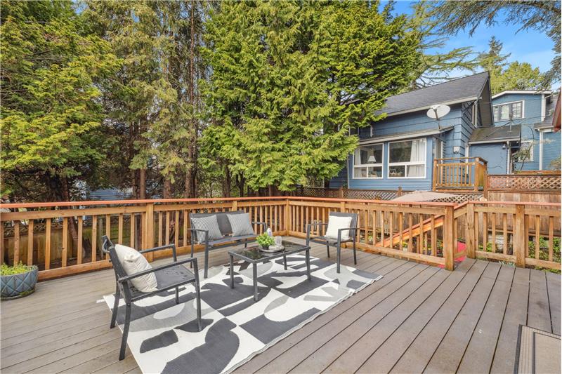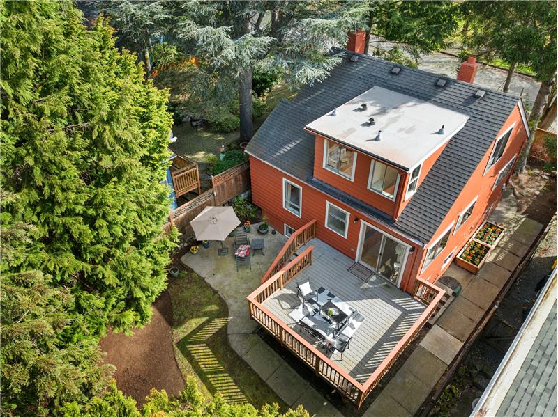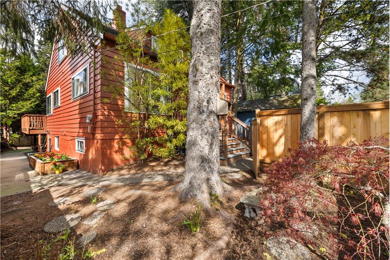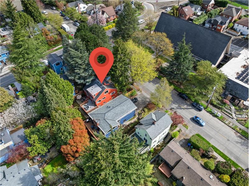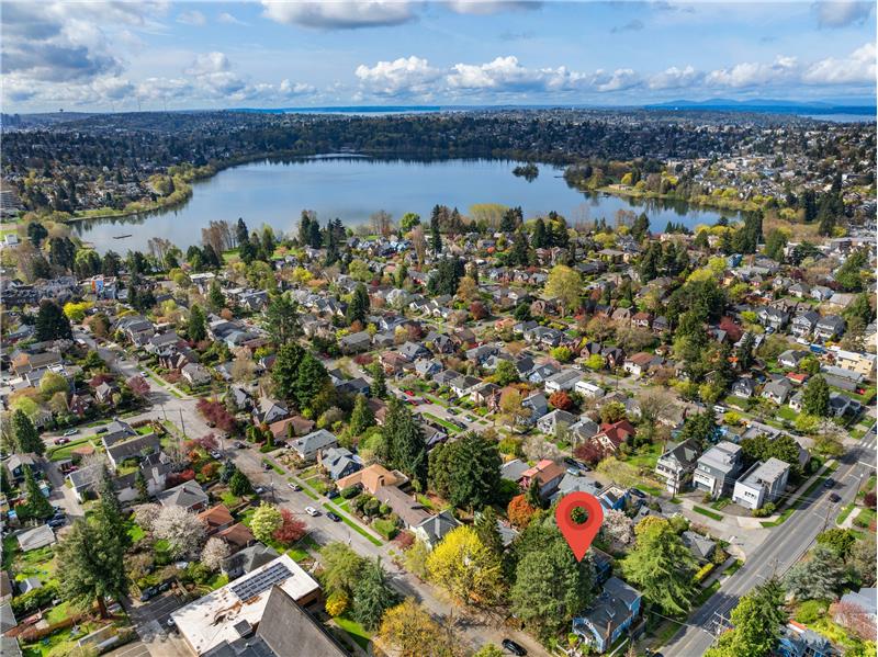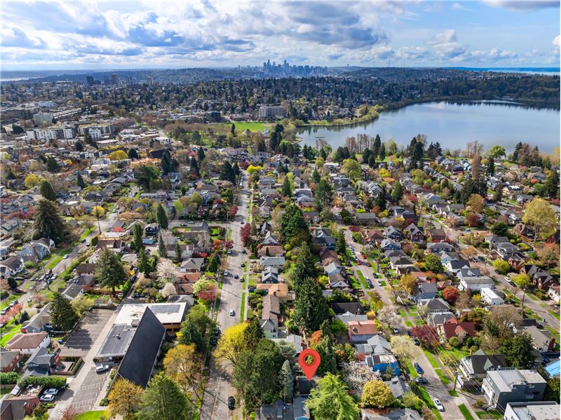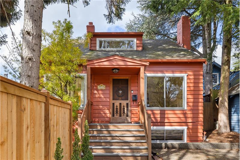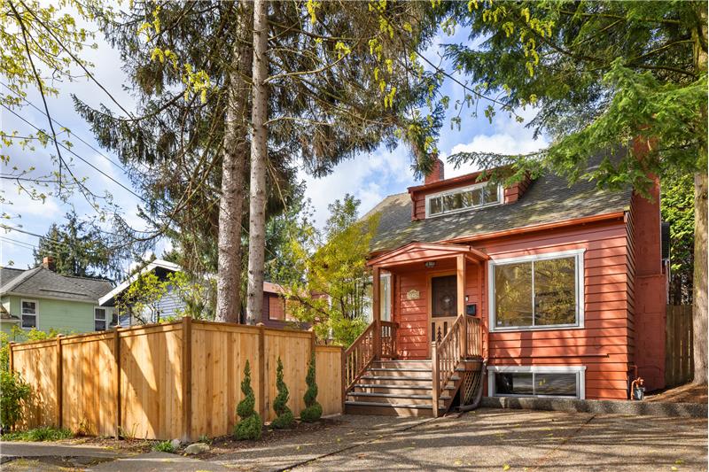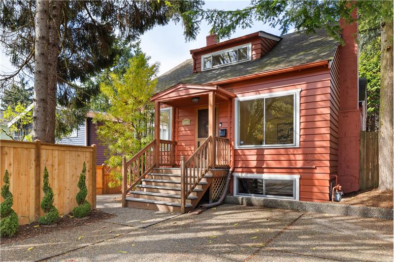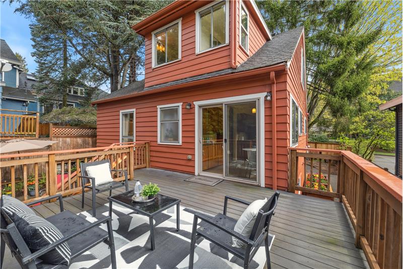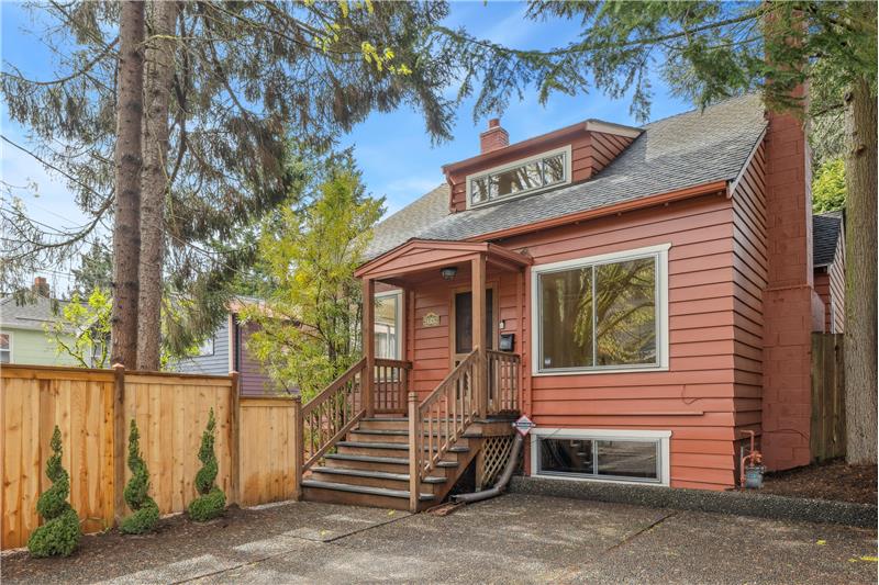 Heart Set On GREENLAKE?! Home of Emmy Award Winning Graphic Artist, Cynthia Shulman. Thoughtful updates seamlessly blend with original craftsman details. Fireplace w/custom surround bookshelves. Luxury plank flooring on main level living and dining. Modern kitchen with plenty of storage. Walk-out onto private deck oasis, for dining al fresco! Lower level has separate apartment w/private entrance, kitchenette, 3 beds, .75 bath. How about a home office or AirBNB?! Fully fenced yard for Fido, and two off-street parking spots with E-charging station! Bedroom on main level w/full bath. Upstairs pri
