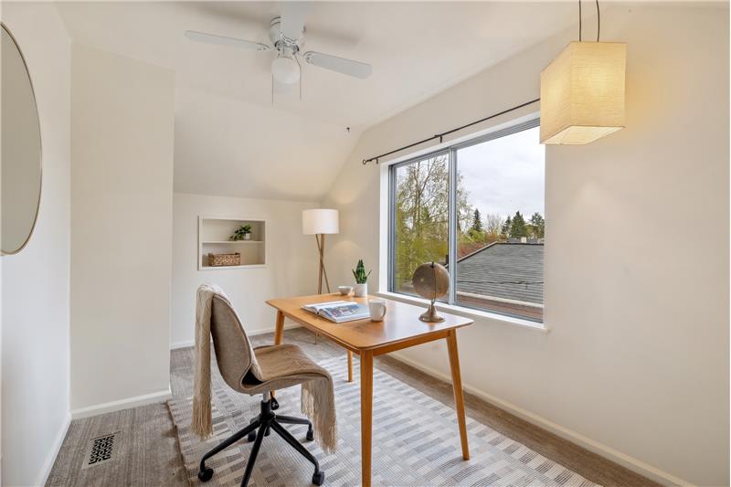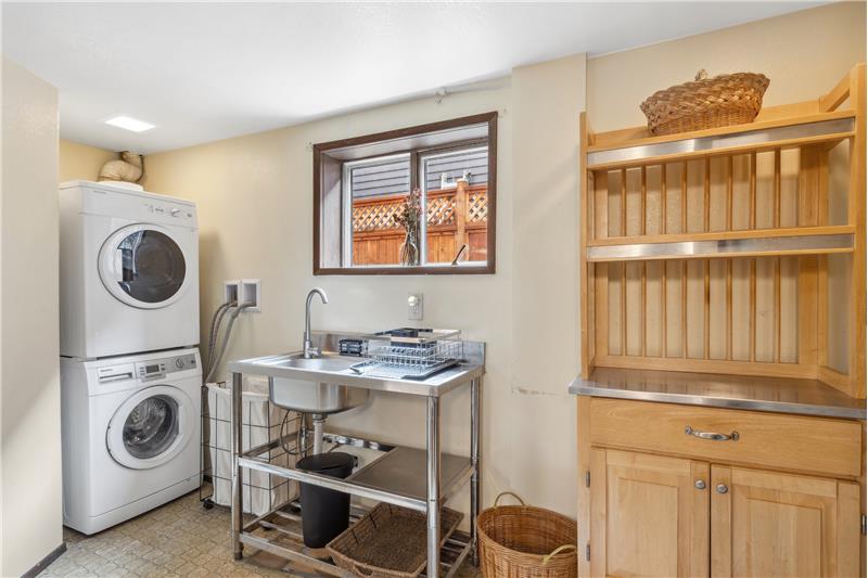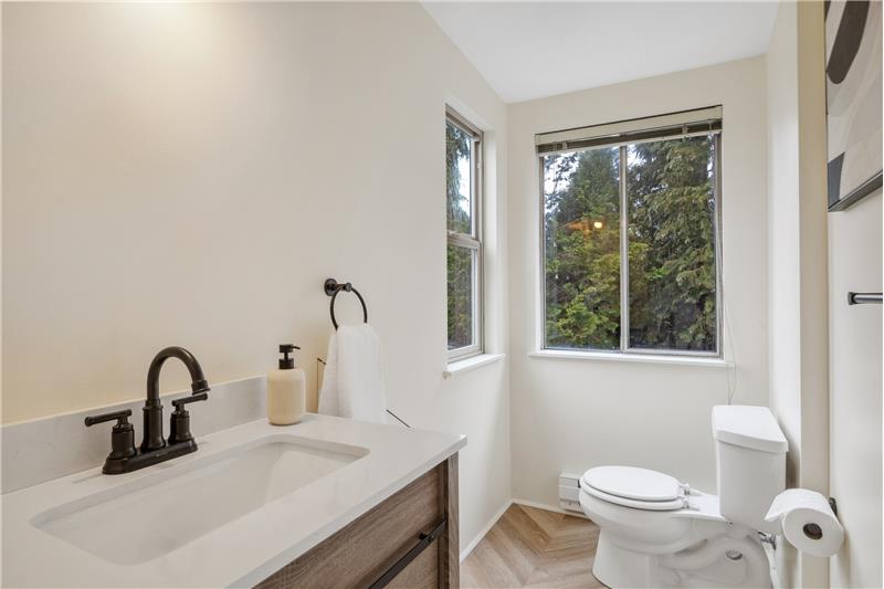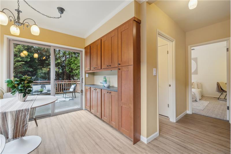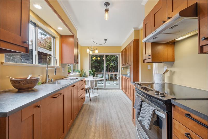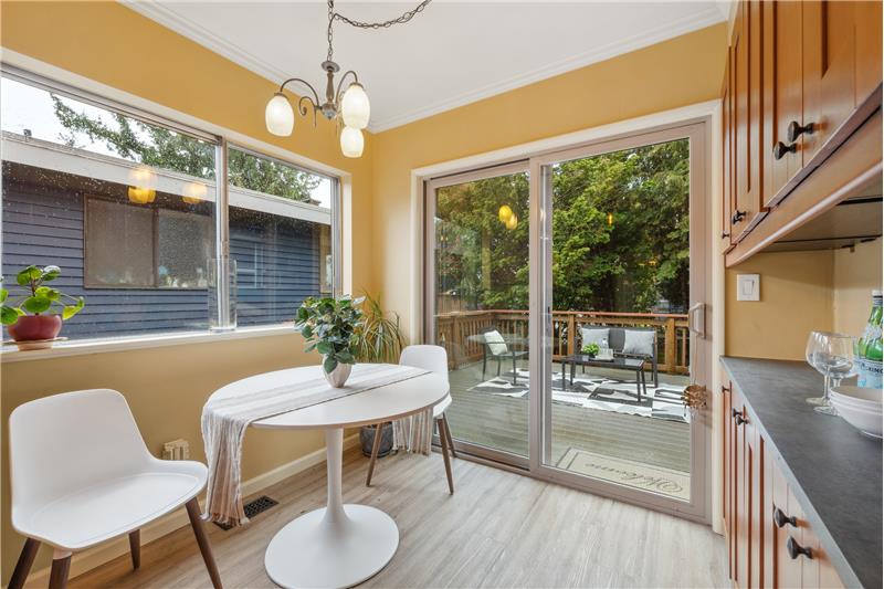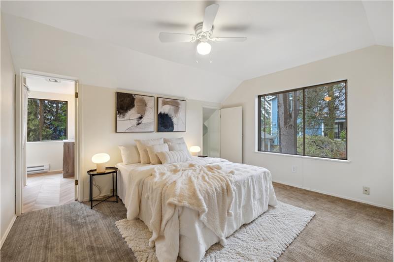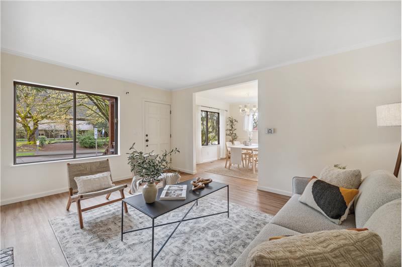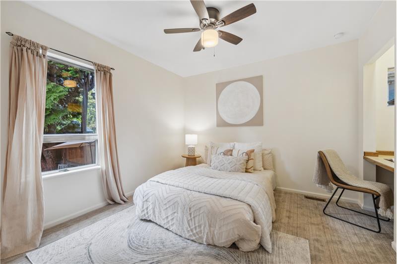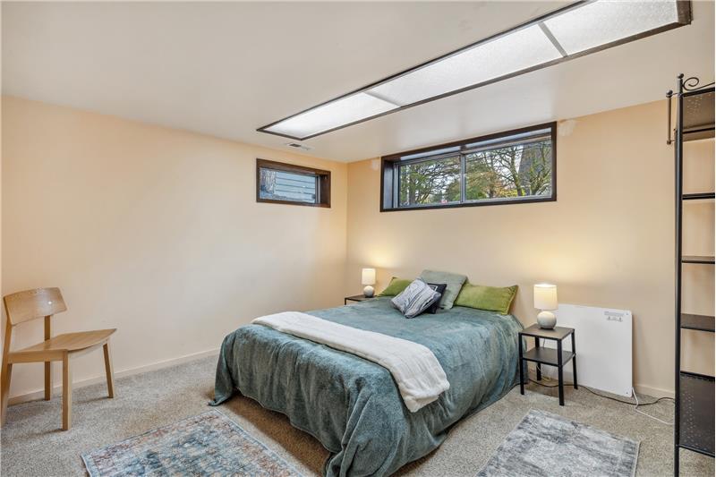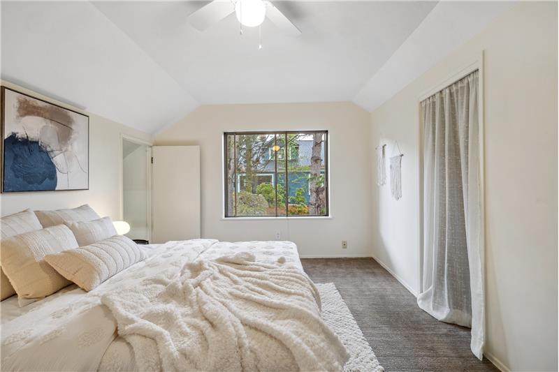 Heart Set On GREENLAKE?! Home of Emmy Award Winning Graphic Artist, Cynthia Shulman. Thoughtful updates seamlessly blend with original craftsman details. Fireplace w/custom surround bookshelves. Luxury plank flooring on main level living and dining. Modern kitchen with plenty of storage. Walk-out onto private deck oasis, for dining al fresco! Lower level has separate apartment w/private entrance, kitchenette, 3 beds, .75 bath. How about a home office or AirBNB?! Fully fenced yard for Fido, and two off-street parking spots with E-charging station! Bedroom on main level w/full bath. Upstairs pri
