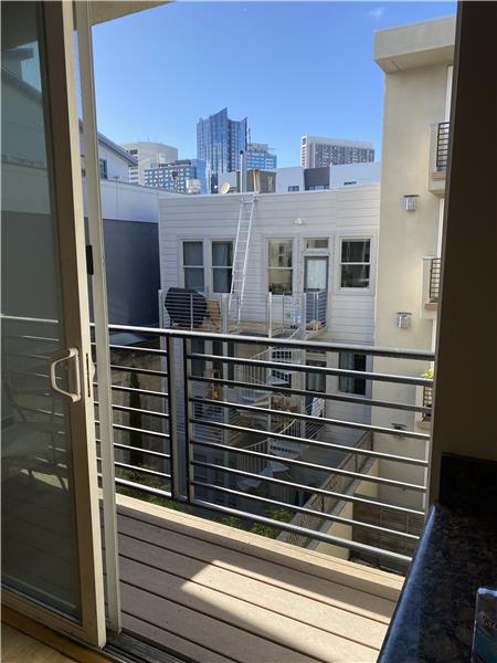 1 bedroom condo with living/dining room that leads to a walk-out deck. The kitchen features granite counters and stainless steel appliances. 1 car deeded parking. Located in the heart of SOMA at 9th Street and within walking distance to Hayes Valley, Inner Mission and Civic Center. Easy access to freeways and public transportation including BART and Metro MUNI. Walk score: 99; Transit score: 100; Bike score: 99.