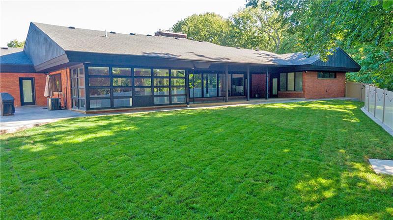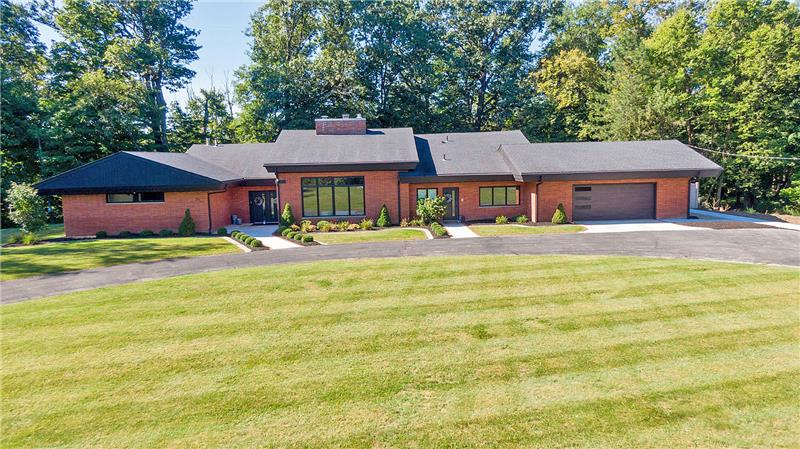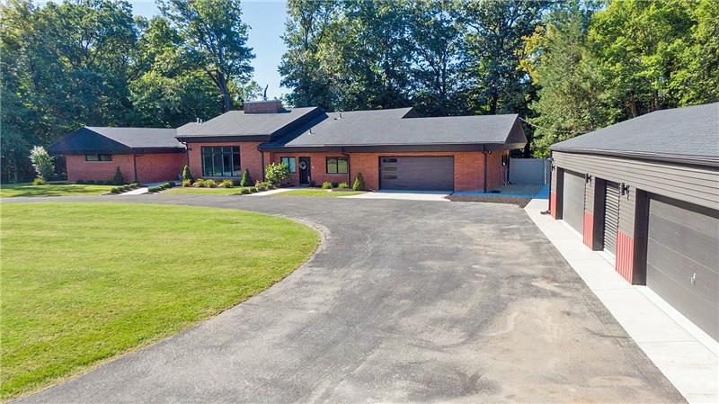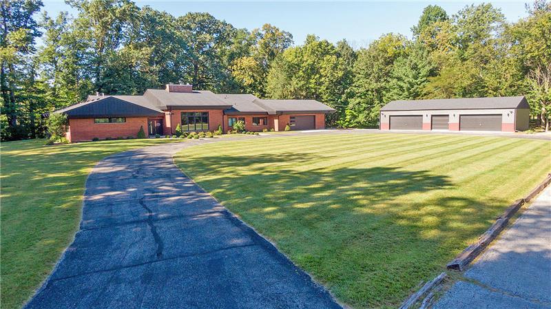 Secluded 4.93 Acre Estate, Sprawling Red Brick Ranch inspired by Frank Lloyd Wright style design