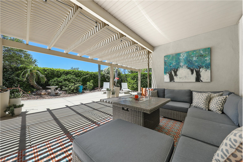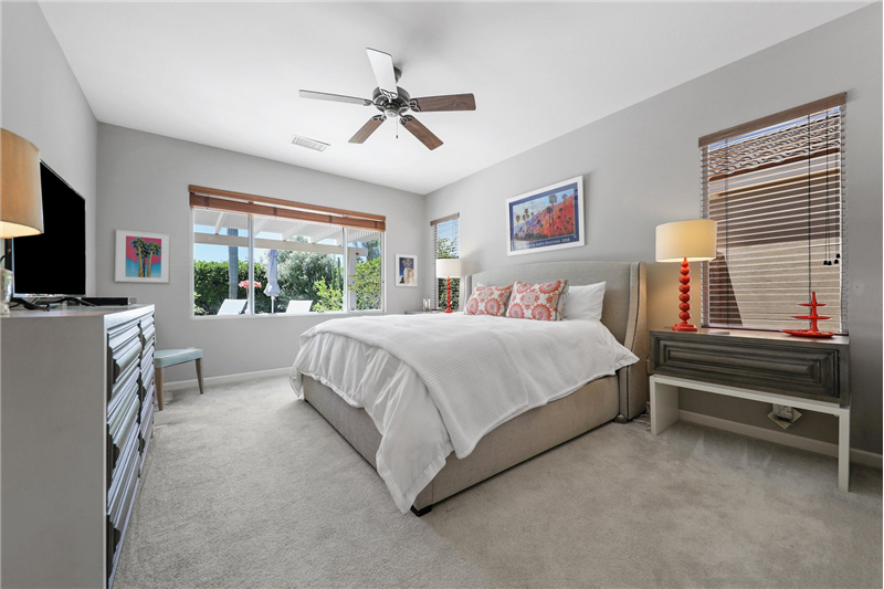 Welcome to the highly sought after premier guard gated 55 + golf resort community of Sun City Palm Desert! This beautiful, adorable, and ever popular Extended Lanai floor plan of 1, 291 SF offers, 2 Bedrooms, 2 Baths, with extended primary bedroom and garage for extra space where it truly matters. The garage is certainly large enough to accommodate 2 cars and a golf cart.