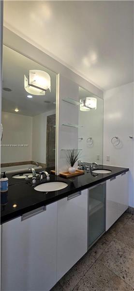 Experience elevated afterview living in this 2-bed, 2-bath unit with a den serving as third bedroom. Encompassing 1,735 sqft, this home features a large private balcony with stunning sunrise and sunset water views. Kitchen features granite countertops, stainless steel appliances and abundant storage. Primary suite offers a spa-like retreat with a soaking tub, separate shower, dual vanity, and custom cabinetry. Impact windows, in-unit washer and dryer, 2 assigned garage spaces, Internet Wi-Fi, and water are included. Enjoy resort-style amenities: renovated pool/hot tub, fitness center, spa ...