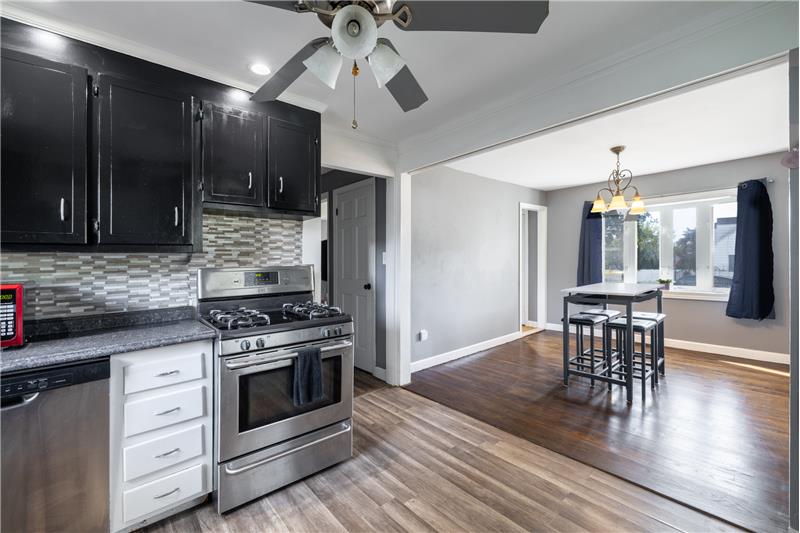 3 bedroom cape, clean and ready to move in.The living room is nicely sized and has recessed lighting.Dining area and kitchen which boasts tons of counter and cabinet space. Full bath and laundry on main level and enclosed mudroom.Main level bedroom which has sliders that lead to the deck. 2 additional bedrooms on the upper level. Fully finished lower level with a small kitchenette, full bath, and an additional room that could be used as an office/bedroom/etc. Bilco door from utility area to back yard. Gas heat and central air. Convenient location.