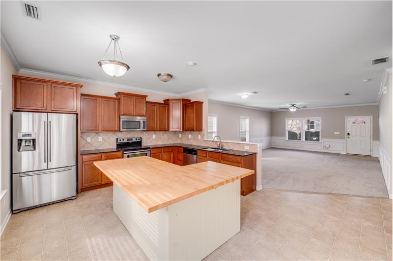 Nestled in a prime cul-de-sac location, this charming home features a fully fenced backyard for added privacy. A welcoming rocking chair front porch greets you as you enter. The open-concept kitchen on the main level is perfect for both entertaining and unwinding, complete with stainless steel appliances and a central island. Upstairs, you'll find generously sized bedrooms, along with a versatile loft area that can be used as a second living space or home office. Freshly painted inside and recently put in new carpets. Come take a look! Text "Shadbrush8007" to 704-870-2369.