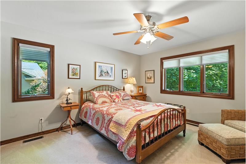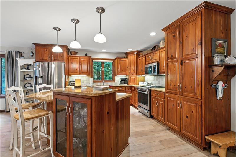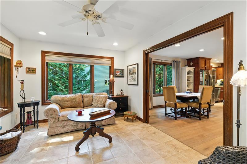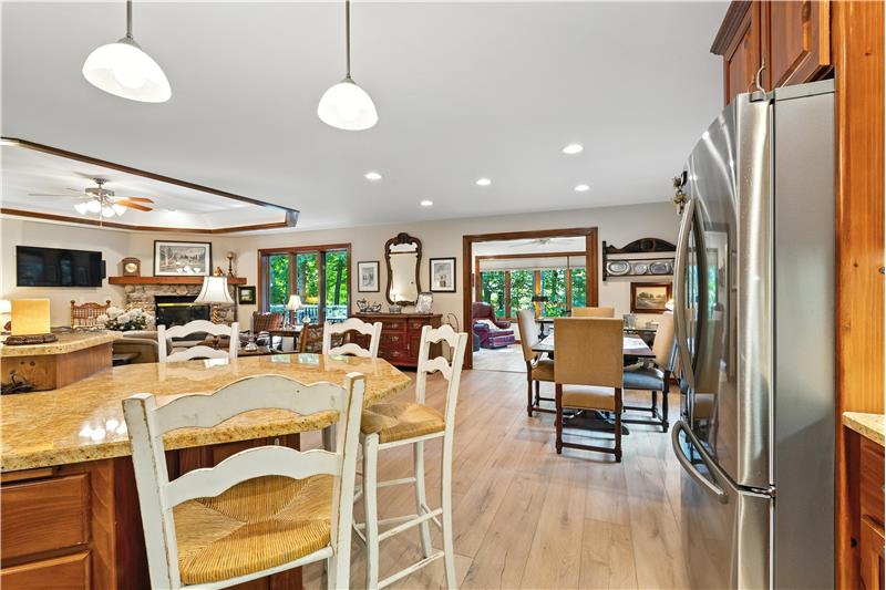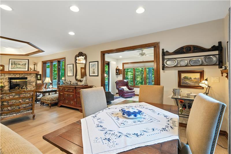Lovely year-round home or vacation getaway, just a short distance to everything you love about downtown Baileys Harbor. Desirable, single-story floorplan with fireplace and both an office and a sunroom has been recently updated with new hardwood floors and new carpet in the primary bedroom, as well as completely repainted with new kitchen appliances. The open floor plan is a dream for entertaining. More storage in the roomy garage with a new built-in closet with interior shelves and a barn-door closure. Desirable community on 40 wooded acres and an easy distance to dining, beach and more.