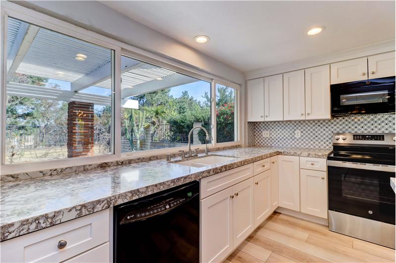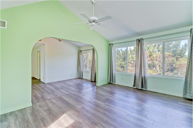 Located in the desirable Golden Hills neighborhood, this spacious home offers 5 bedrooms and 3 bathrooms, making it the perfect layout for any family. With stunning views of the Juanita Cooke Cycling, Hiking, and Equestrian Trail, the property feels serene and private. As you enter, you’ll be greeted by soaring vaulted ceilings, an upgraded skylight, and a cozy fireplace that creates a warm and inviting atmosphere. The kitchen features newer cabinetry and elegant granite countertops, and it seamlessly flows into a large family room with scenic views of the treetops and hiking trail...