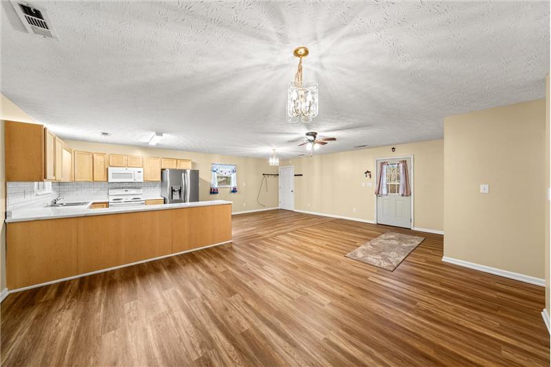 This 1,390 sq. ft. 3-bedroom, 2-bath home offers one-level living inside the city limits of Pigeon Forge. The open floor plan features luxury vinyl flooring throughout. Enjoy seasonal mountain views from the screened and covered back porch. Situated on a 0.60-acre lot, the property includes a storage building and updates such as a new roof (2017) and windows (2022). Located less than five miles from Dollywood and eight miles from Gatlinburg, city zoning prohibits short-term rentals, ensuring a quiet, stable neighborhood. Ideal for first-time buyers or those looking to downsize.