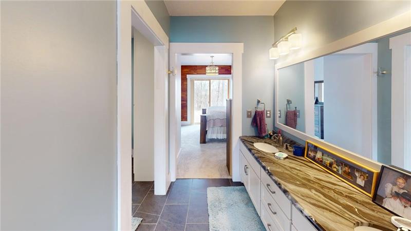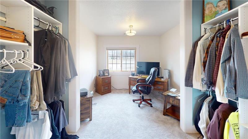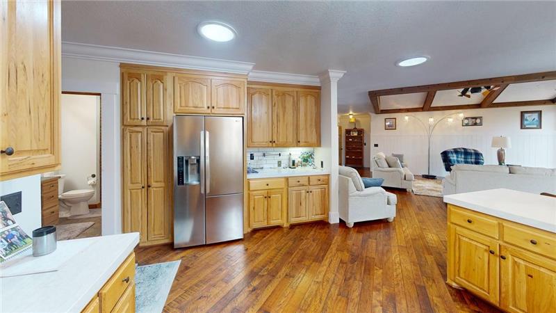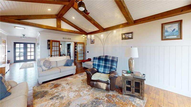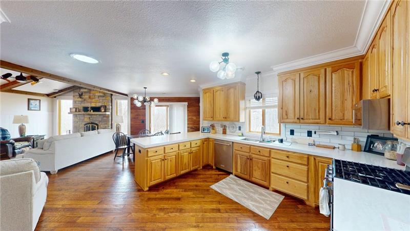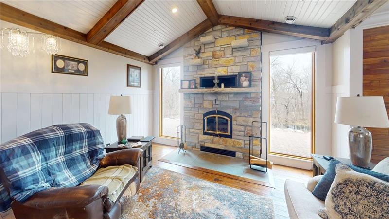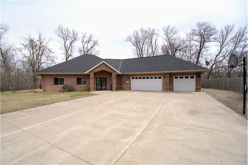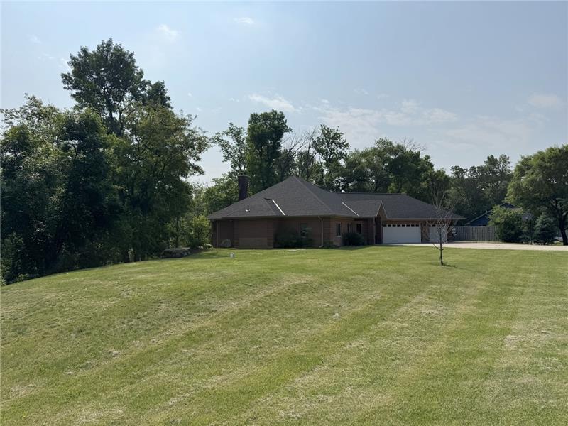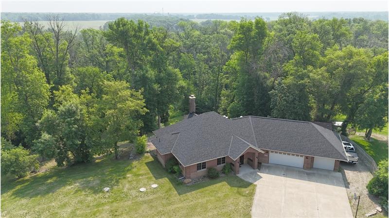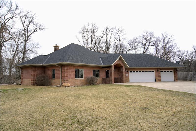 Beautiful acreage setting in a countryside neighborhood! Brick-constructed patio home w/gorgeous renovations that make this home shine. Attached 3 stall garage w/epoxied floors, in-floor heat & quiet close garage doors. Open kitchen/dining/living room layout w/Hickory flooring, great countertop space in the kitchen. Kitchen pantry with pull-out shelving, custom countertops and breakfast bar. Stone surround fireplace in the living room, wood beamed vaulted ceilings, wall-length windows for great natural light. Lg office w/ custom built-in desk and shelving, French doors, remodeled primary BR...