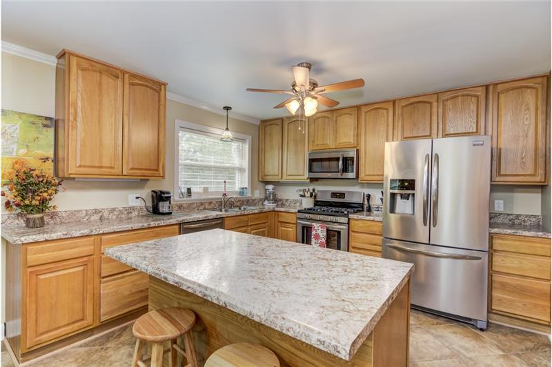 Lovely updated all brick ranch home in a quiet street. Large open kitchen w/ SS appliances including gas range/oven. Refinished original hardwood floors. Large windows give this home lots of natural light. Gas log fireplace in spacious family room. Enjoy quiet evenings on your back patio overlooking a lush green and fenced backyard where large shed offers extra storage. Meticulously maintained and cared for home.