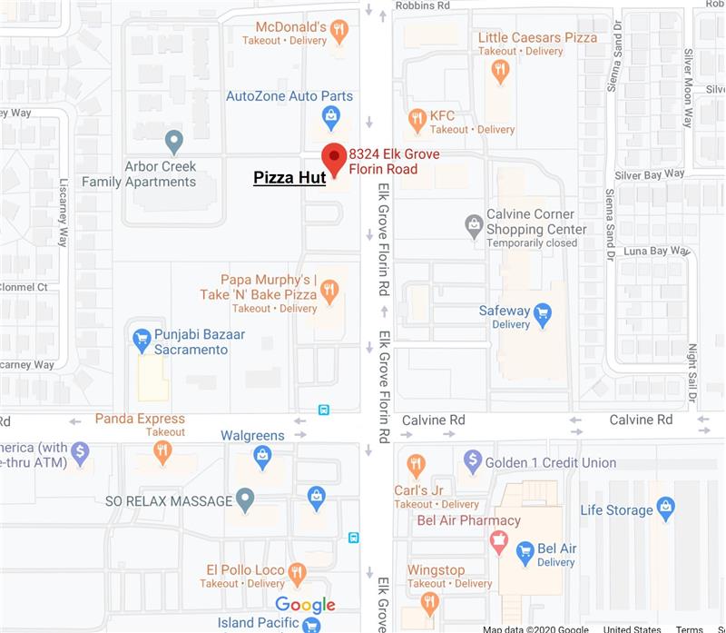 Rare opportunity to save big $$$ by picking up this all built-out former Pizza Hut located on one of the busiest South Sacramento/Elk Grove intersection. The space includes a walk-in cooler/freezer combo, hoods, sink and counter-top. This property is in the mid of high demand commercial area surrounded by densely populated residential, a perfect environment for a business to thrive. Outside paved and landscaped patio sittings are available. PLEASE DO NOT SPEAK TO ANY EMPLOYEE. CONTACT LISTING BROKER ANTHANY NGUYEN AT 916.571.9000 FOR A PRIVATE TOUR.