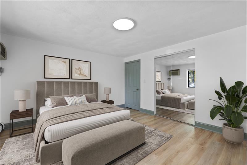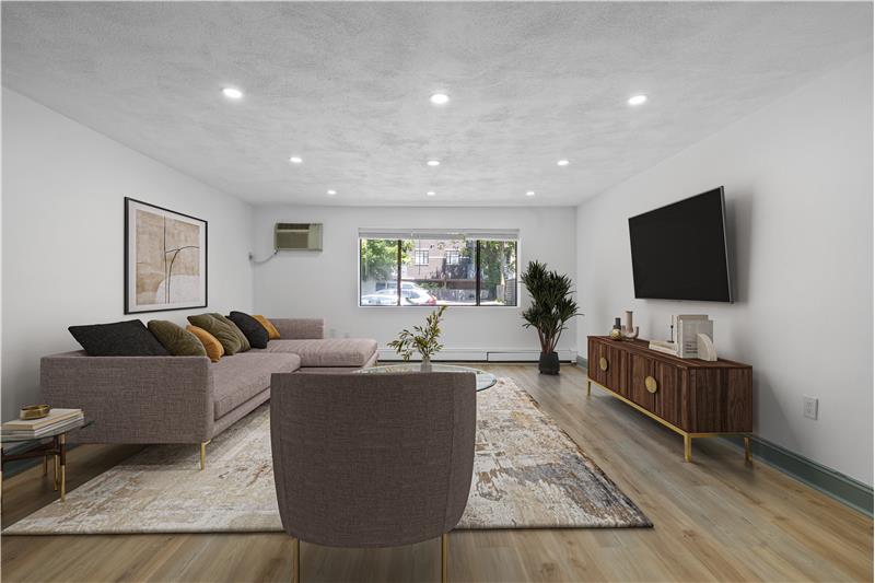 This move-in-ready 2-bedroom, 1-bath condo features an innovative layout with luxury vinyl plank flooring, quartz countertops, new stainless steel appliances, recessed lighting, a tiled kitchen backsplash, and clean, modern finishes. Enjoy an open floor plan with spacious bedrooms, AC, off-street parking, additional storage, and pet-friendly living. The kitchen flows into the living/dining area—ideal for entertaining or relaxing at home. HOA fee includes heat, hot water, and more for added value. Located near the Green Line Extension, major bus routes, I-93, and Rt 28 for easy access to Boston