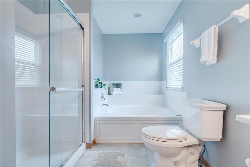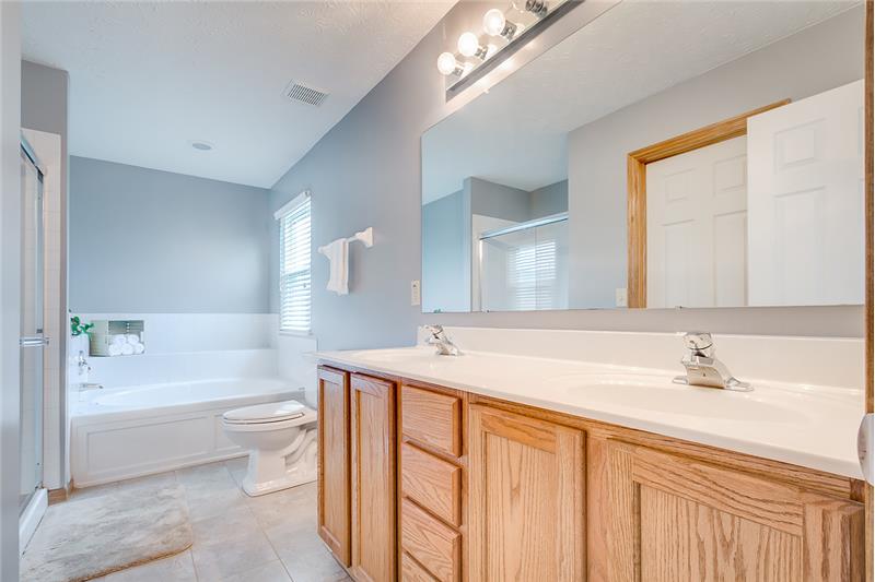 Impeccable one owner home in Woods at Reynoldsburg featuring 4 bedrooms & 2.5 baths. 2 story floor plan featuring laminate floors in the entry way and kitchen, dining room, and family room. Kitchen features maple kitchen cabinets, stainless steel appliances, backsplash, updated counters, granite composite sink and updated lighting. Owner's suite features walk-in closet and outstanding deluxe owners’ bath with separate shower, garden tub, porcelain tile flooring and double vanity. Second floor features 4 bedrooms, 2 full baths, and plenty of space. The second floor full bath has porcelain tile
