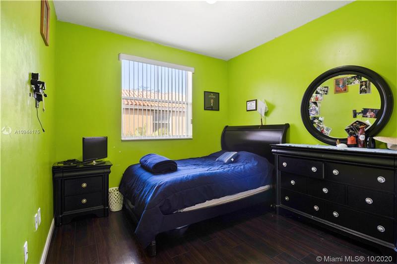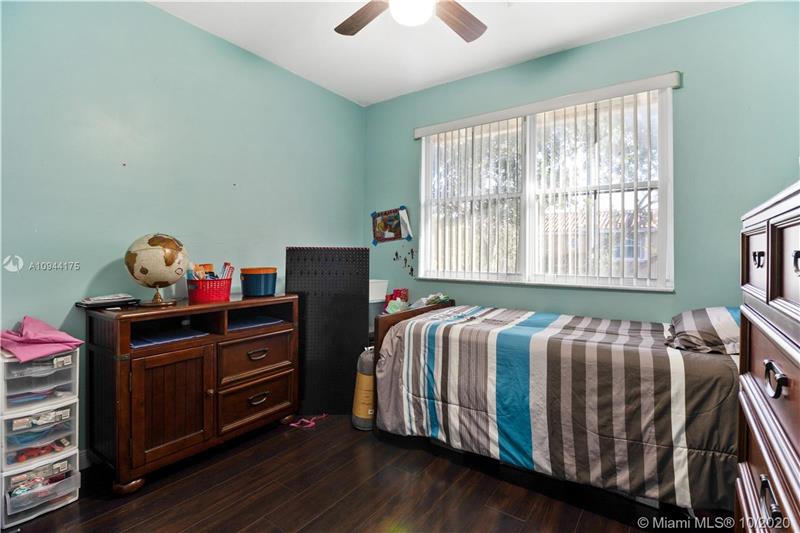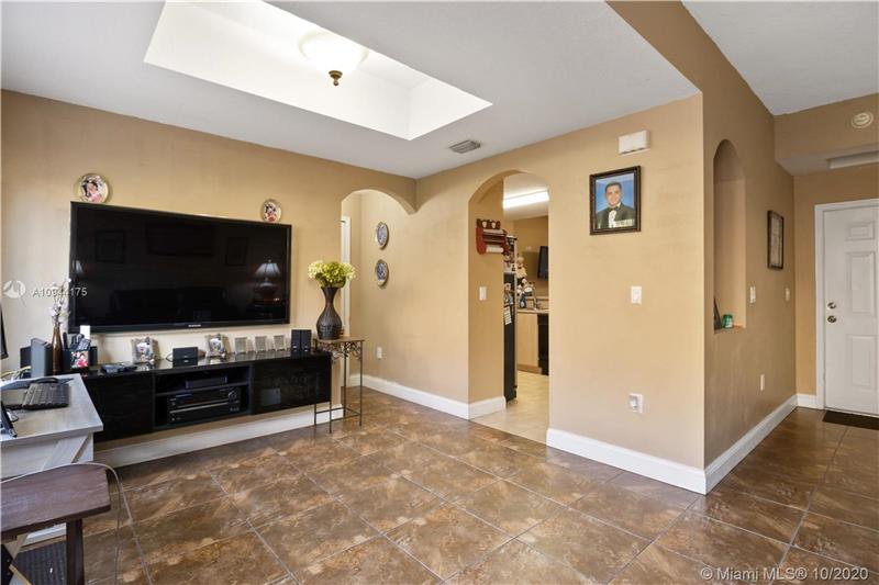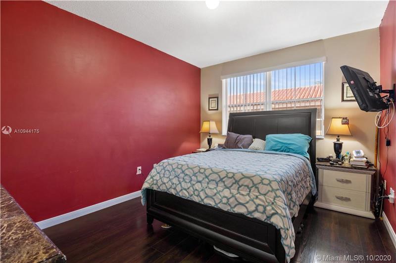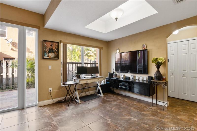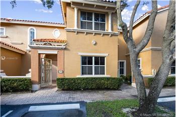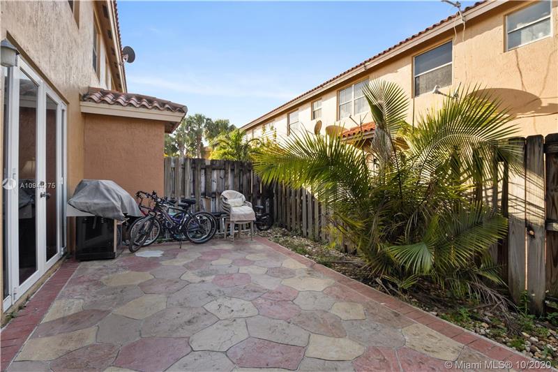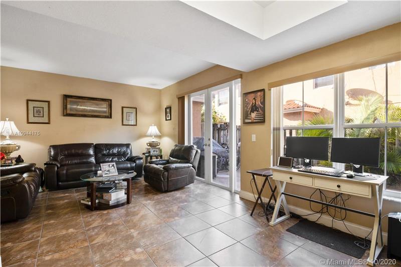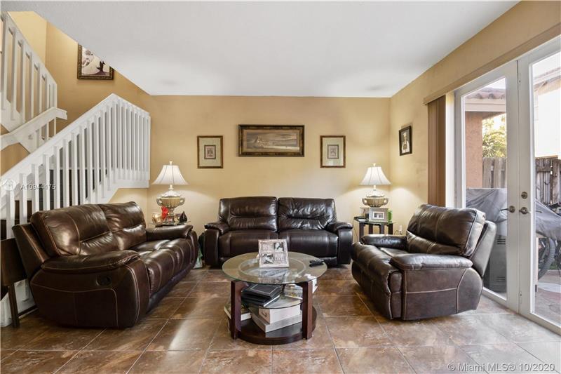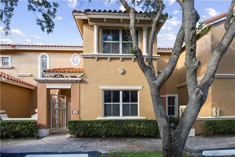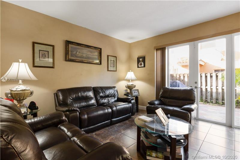 Villas Vizcaya in Miami Lakes! This wonderful townhome offers a stunning layout with french doors, high ceilings, tile flooring, and dark wood flooring on staircase and upstairs. Very spacious living room. Great outdoor space with outdoor storage, and stamped concrete. Eat in kitchen with food pantry, stainless stainless steel appliances, and washer/dryer in the unit. Beautiful gated community with 24/7 gated security, pool, children's playground, and outdoor fitness center. This home will not last.