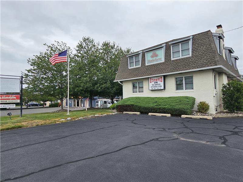 New Price $975,000 This meticulously maintained office building in Maple Glen. Awesome location on Rt 63 (WELSH RD) with excellent exposure to an abundance of traffic. Huge illuminated sign awaiting your very own marque. This property was used as a Real Estate Office for the past 50+ years. Second floor currently rented to a State Farm Insurance Agency. This property is in move in condition featuring multiple offices on first floor with a reception area and one rest room. Second floor features a huge open area, one large office a small kitchen and a restroom. Full basement for storage. Th ...