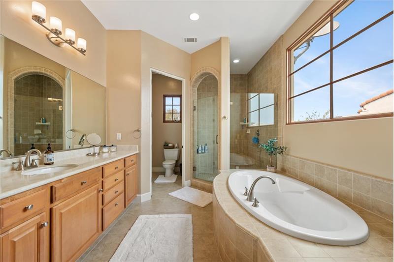 Beautiful home in Costa Pacifica Estates. A grand circular entry opens to a spacious great room with 10' ceilings and a gas fireplace, flowing into a gourmet kitchen with custom cabinetry, breakfast bar, and stainless appliances. The primary suite offers two walk-in closets, spa-inspired bathroom, and private patio courtyard with fireplace. Enjoy multiple outdoor living areas, gazebo with fountain, raised garden beds, and above-ground spa. Premium Loewen windows and solid wood 8' doors throughout. Two-car garage plus separate 1-car garage. Surrounded by greenspace and a community park nearby.