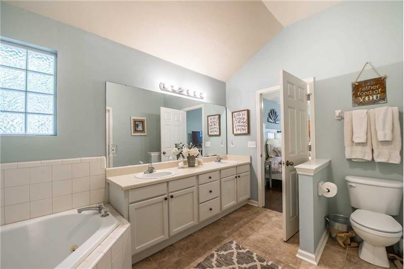 PERFECT and MOVE IN READY! Located in the highly desirable neighborhood of Deerfield Planation and in a picturesque cul-de-sac, this adorable and well maintained three bedroom, two bath split plan features an over-sized size living room with vaulted ceilings and a gas fireplace, formal dining room, eat-in kitchen, inside laundry room, privacy fenced backyard, and large master suite with double vanities, jetted tub, and walk in closet. Do not miss this one before it is gone!!