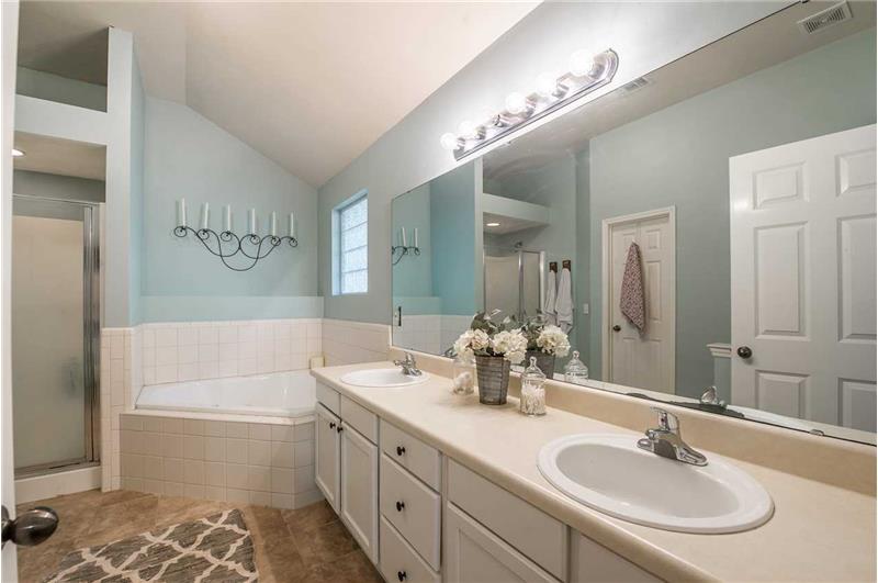 PERFECT and MOVE IN READY! Located in the highly desirable neighborhood of Deerfield Planation and in a picturesque cul-de-sac, this adorable and well maintained three bedroom, two bath split plan features an over-sized size living room with vaulted ceilings and a gas fireplace, formal dining room, eat-in kitchen, inside laundry room, privacy fenced backyard, and large master suite with double vanities, jetted tub, and walk in closet. Do not miss this one before it is gone!!