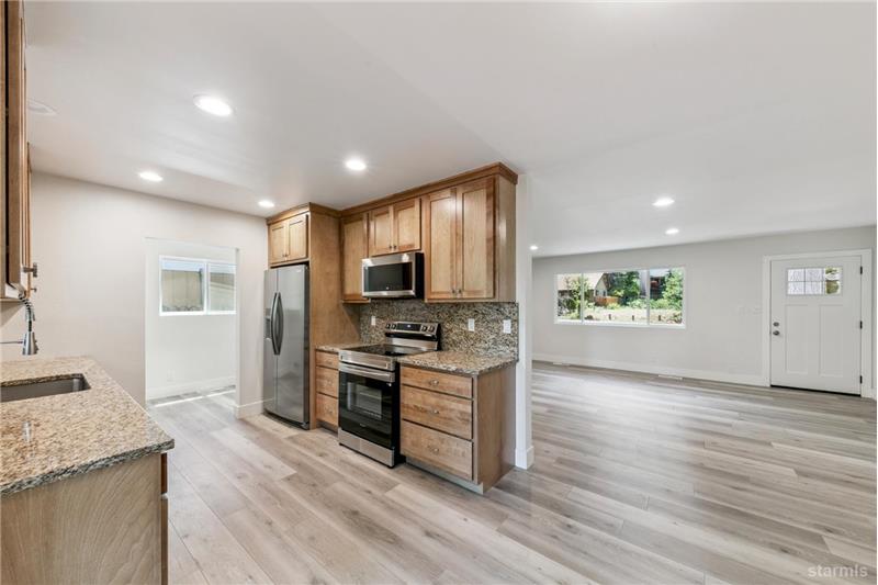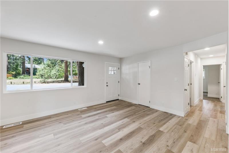 In a peaceful Tahoe residential neighborhood, this beautifully remodeled single-story home offers the perfect blend of comfort and convenience. Enjoy close access to scenic bike and hiking trails. Minutes to the beautiful Pope and Baldwin Beaches and summertime entertainment at the historical Valhala boat house.California Conservancy parcels out back and across the street allow for a sense of privacy.Welcome home to this bright and open living space featuring a custom hearth with new gas log insert, fresh interior paint, new doors and windows, recessed adjustable lighting