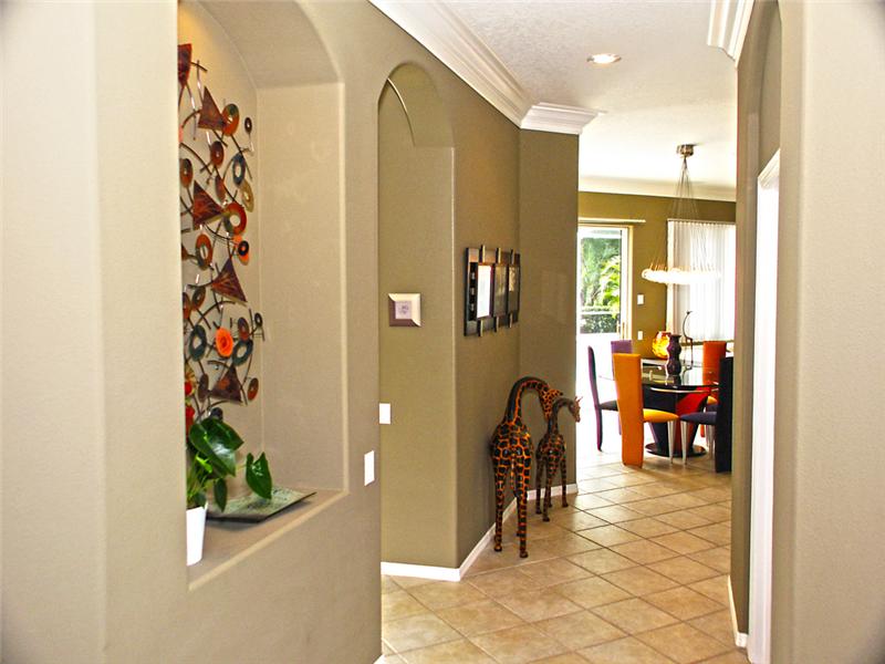 Excellent condition Five Star! This home is a showplace! This is what homes are supposed to look like! Turnkey furnished - dishes, furniture, decorations, What you see is what you get! ( Some art and two lamps do not convey) New floors, new kitchen counters, New lighting, new paint, new pool filter and pump, New gas tank less hot water heater. New Laminate flooring in bedrooms and den. New driveway pavers, fresh paint in garage, new garage door opener, New pavers in pool patio and lanai. Contemporary décor with the most updated lighting available! Custom fans, vaulted ceilings. If you want mov