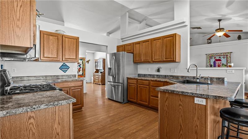 If the Colorado National Monument could choose a favorite view, it might just be this one. Nestled in Fruita’s vibrant heart, this 4-bedroom, 2-bath beauty is where comfort meets character and the desert meets the dream. Start your mornings sipping coffee on the front patio, gazing at red rock cliffs glowing in the sunrise. Inside, stainless steel appliances shine in a kitchen made for cooking and connecting, with a pantry big enough to hide midnight snacks and your Sam's Club haul. The living room invites you in with warm laminate floors and a gas fireplace that crackles.