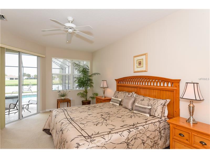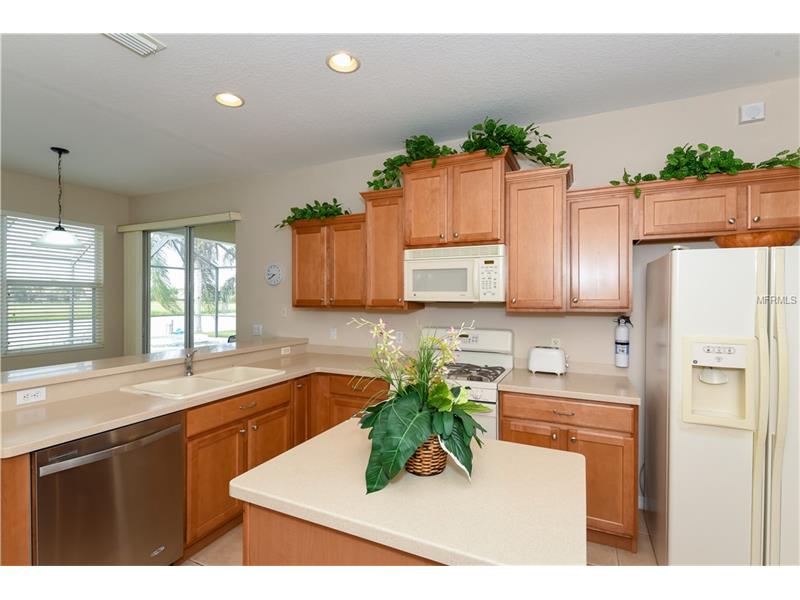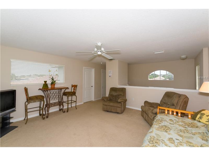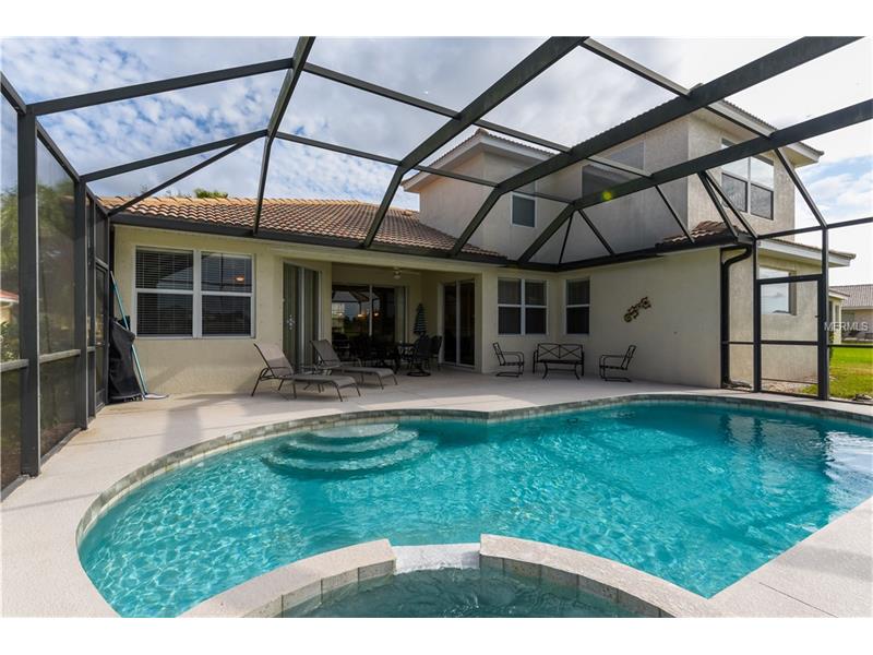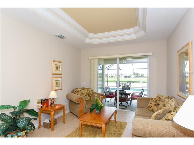 When you open the front door this immaculate, one owner home will impress. It comes fully furnished. Tile in all living areas except bedrooms. Kitchen has island and eat-in area which is open to the family room. Huge 4th bedroom with full bath on 2nd level could be used as a bonus room, game room, etc. 3 bedrooms on 1st level plus an office/den. Formal living and dining room with beautiful tray ceilings. Then you step outside to the lanai with lovely pool and spa overlooking a lake where you will enjoy many sunsets while entertaining or just relaxing with your favorite beverage. Main air condi