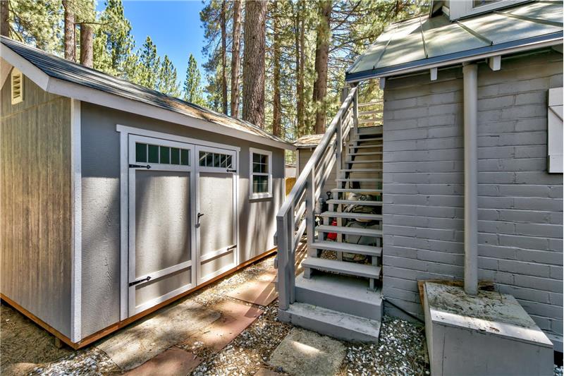 Be ready to fall in love from the minute you walk into this beautiful cabin located in the sought after Al Tahoe neighborhood. This breathtaking home is filled with so much charm with wood ceilings throughout, a gorgeous open wood burning stove & mantel, and open concept living great for entertaining. There are 2 spacious bedrooms downstairs with built in cabinetry and a full bathroom. The spacious kitchen offers granite counter tops & stainless steel appliances. There is a large laundry room/mud room off the kitchen with access to the beautiful courtyard to enjoy those beautiful Tahoe Summers