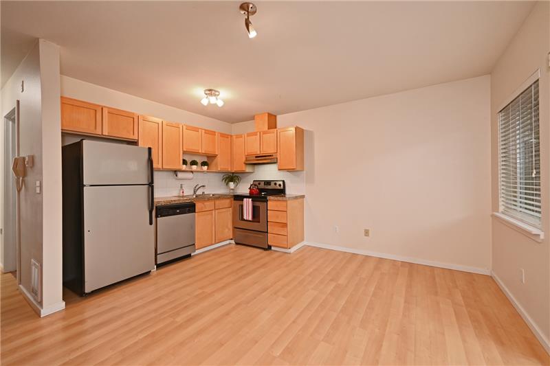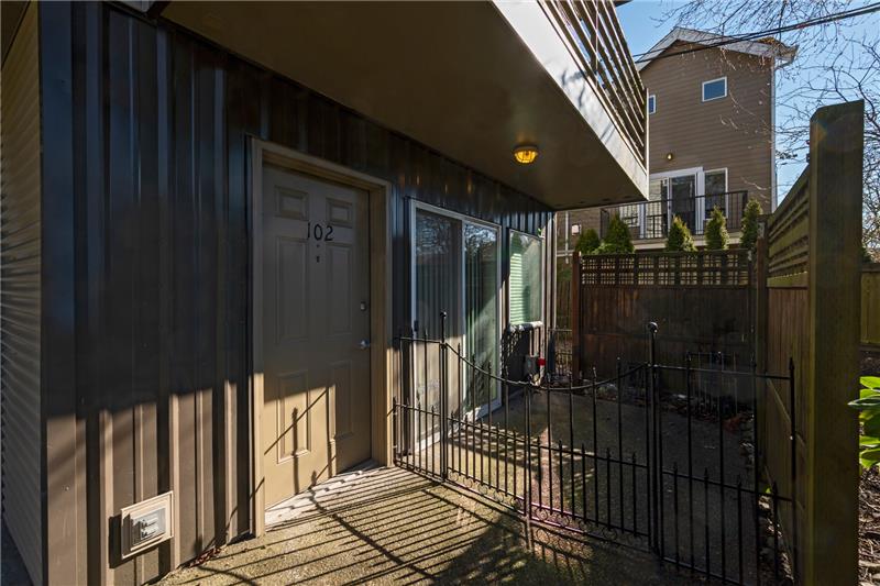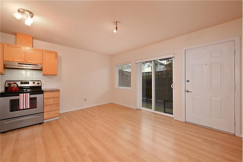 North Green Lake South West Corner unit with patio area! Small home with smart layout maximizes the livability. 77 Walkscore "Very Walkable, most errands can be accomplished on foot" Top quality condo conversion completed in 2005 with kitchen granite counters, maple cabinets, tile backsplash, and stainless appliances, ceramic tile in bathroom, spacious bedroom, with private patio for entertaining and secure parking.