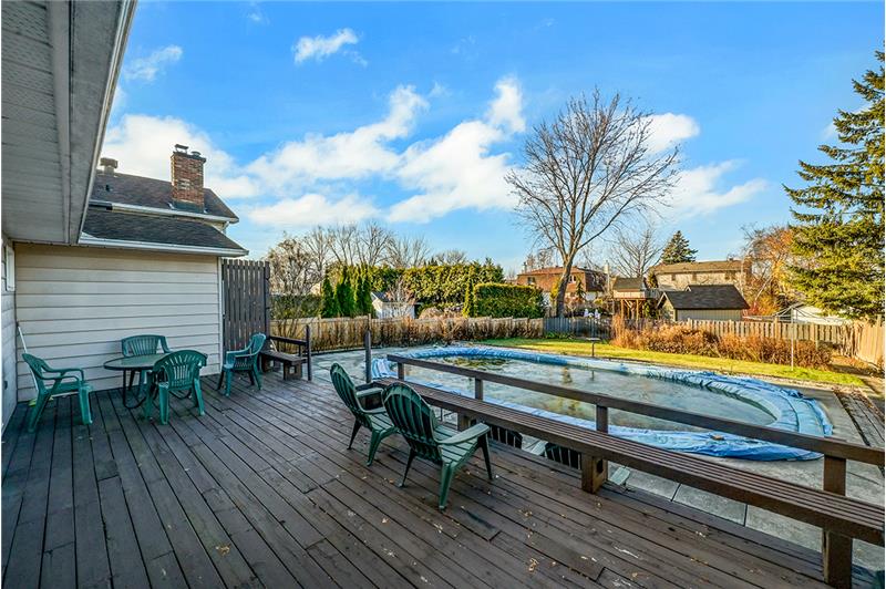 This charming 3+1 bed, 3.5 bath bungalow with a double garage offers comfort and style. Enjoy a cozy living room, formal dining, eat-in kitchen, large family room, bar, and a private backyard with an inground pool. Perfect for relaxing and entertaining!