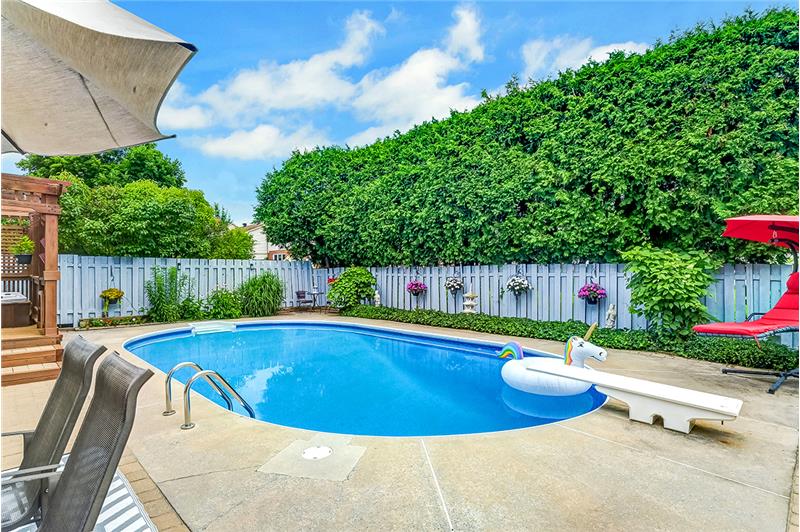 Move-in ready 4-bed home on quiet crescent near park & Ottawa River. Features heated pool, hot tub, granite kitchen, hardwood floors, luxe ensuite, finished basement, new AC, and prime location.