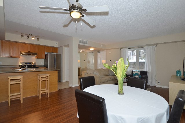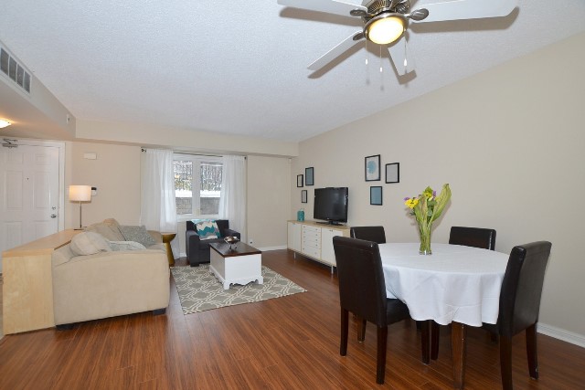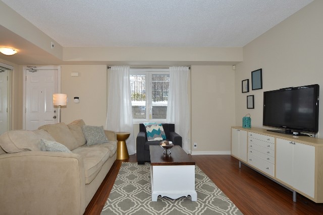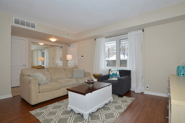 Don't Miss Your Chance To Get Into The Toronto Real Estate Market!! Rarely Offered Ground Floor Townhome!! 934 Sq.Ft Of Living Space!! Plus 235 Sq.Ft Patio!! Open Concept Living, Dining And Kitchen Is Great For Entertaining!! Gorgeous Stainless Steel Appliances!! Brand New Floors!! Renovated Washroom!! 3 Spacious Bedrooms!! One Parking Spot And One Locker!! Steps To Trendy King West, Schools, Transit And So Much More!!