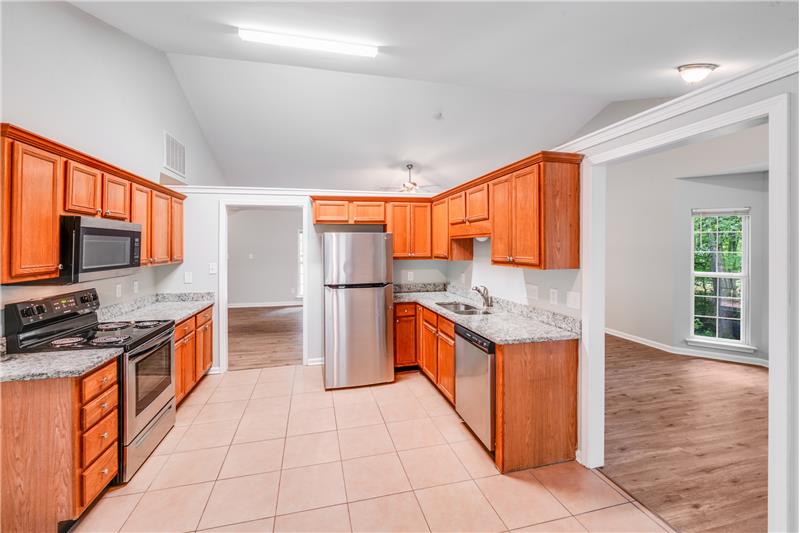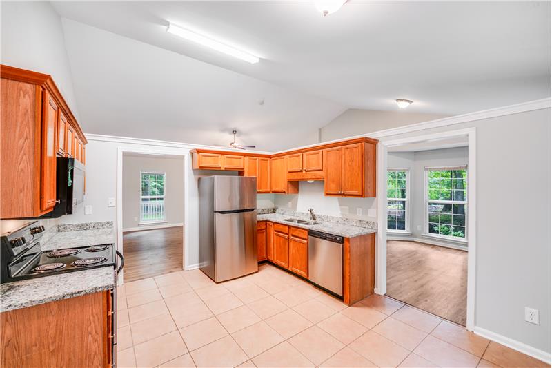 Introducing a spacious and inviting 3-bedroom, 2-bath residence in Charlotte, NC. This charming home features a warm living room with a cozy fireplace. The bright breakfast area, bathed in natural sunlight, offers serene views overlooking the expansive deck, ideal for morning coffee or weekend gatherings. The kitchen is a chef’s dream with vaulted ceilings, stainless steel appliances, granite countertops, and ample cabinet space, making meal prep both stylish and functional. Text "Vagabond9000" to 704-870-2369.