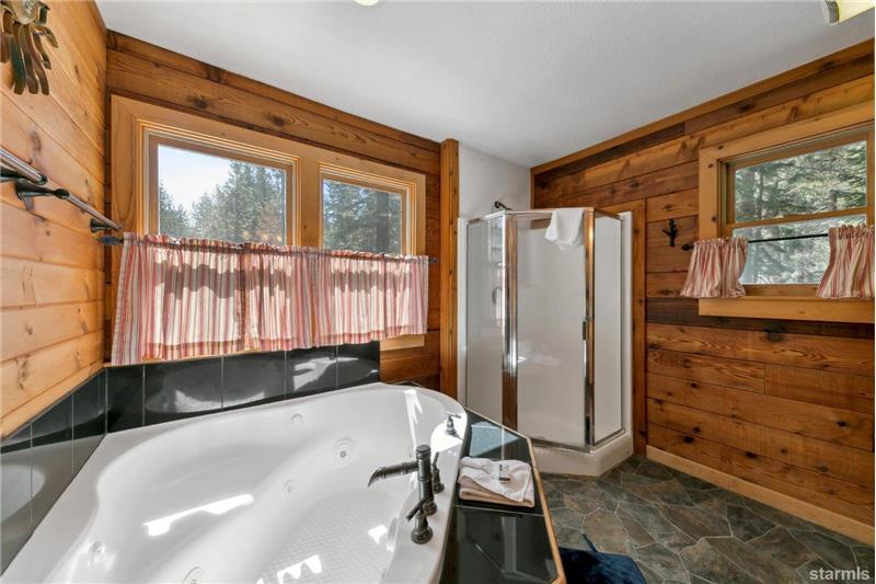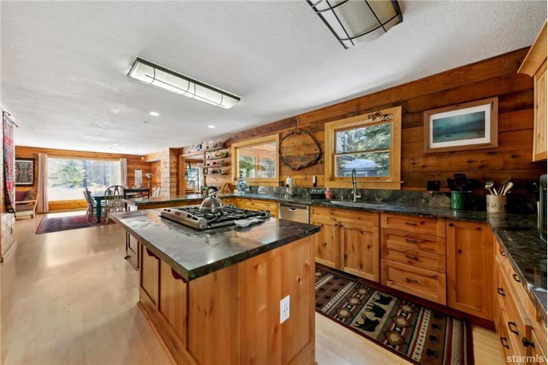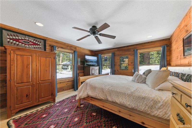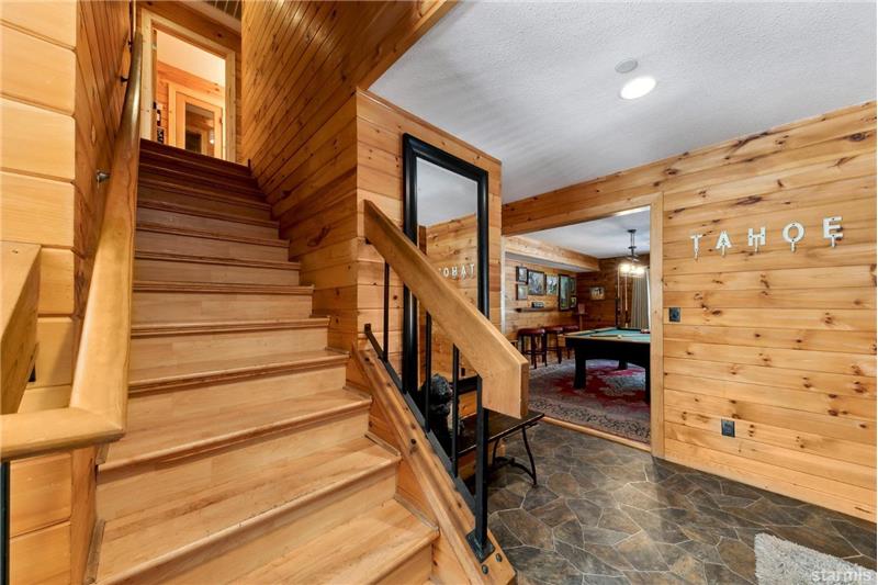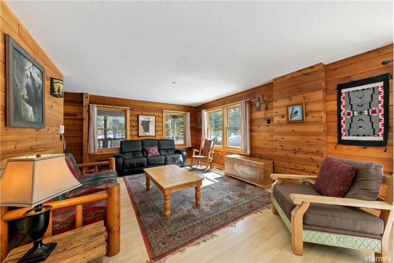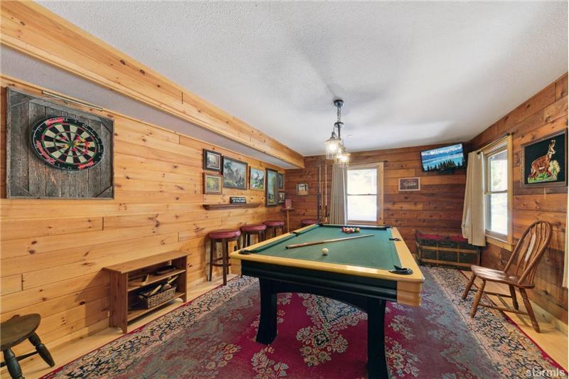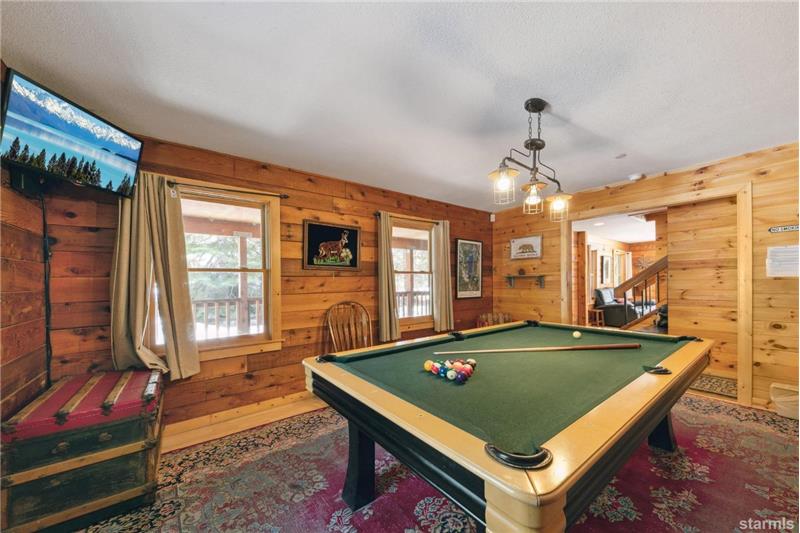 Escape to your dream cabin in the woods where rustic charm meets modern luxury. This turn-key, Western Red Cedar home features interlocking timbers & boasts plenty of space inside & out. Step inside & you'll be greeted by an expansive floor plan, multiple entertaining areas, a grand natural stone fireplace & separate pool parlor. The remodeled kitchen is complete with modern amenities, a double refrigerator, custom cabinets, polished river rock countertops & other stylish finishes.Upstairs, you'll find 4 bedrooms, 3 baths, & a sauna for extra relaxation.