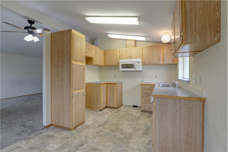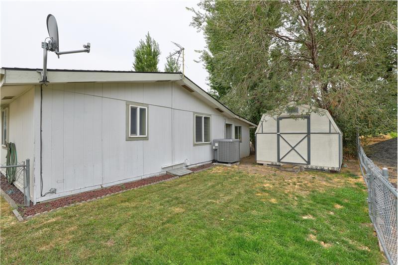 Move in ready home in this popular 55 years plus community. Located at the end of a Cul-de-sac this 3 bedroom 2 bath home has a carport and two storage sheds with outside access. The backyard is fenced and the front is neat and tidy with a cute front porch. HOA dues include water, sewer, trash, management and maintenance of the common areas. Roof and HVAC were replaced in the last 4 years.